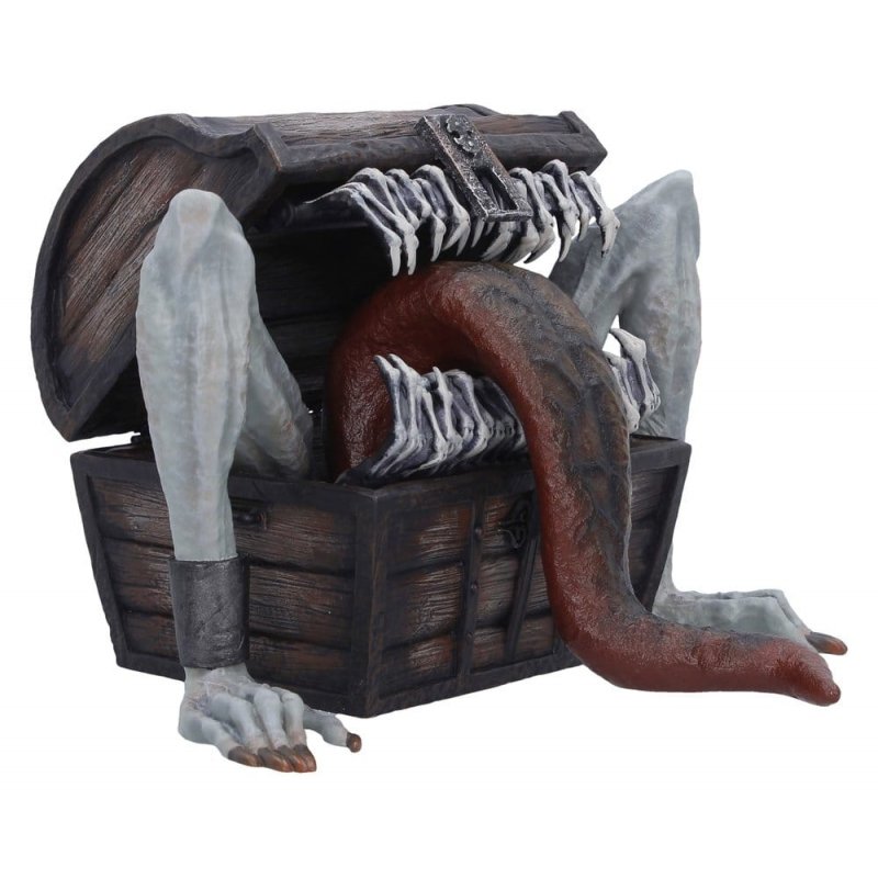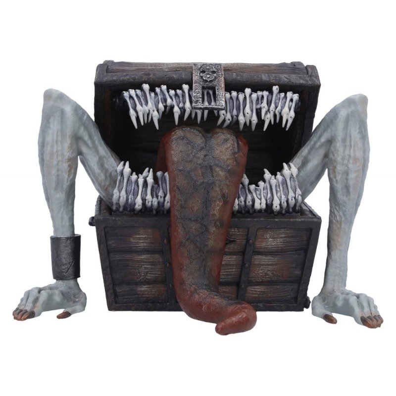 Officially licensed collectIble of the infamous Mimic from the DARK SOULS series, measuring 11.2cm and crafted with detailed precision.Featuring a removable lid, outstretched arms, a protruding tongue, and sharp, menacing teeth, all sculpted from high-quality resin and hand-painted. Packaged securely to ensure all intricate parts arrive in pristine condition, making it ideal for display or gifting.Perfect for DARK SOULS fans, video game collectors, fantasy enthusiasts, and lovers of unique horror-themed decor.A must-have centrepiece for any DARK SOULS collection, this Mimic box perfectly captures the unsettling charm of the game's most deceptive treasure chest.Size: 11.2 x 18.5 x 9 cm
