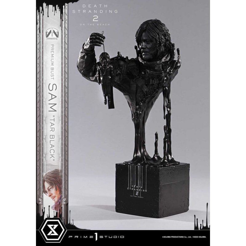 "The swaying Dollman, the rising tar. Sam's new journey captured in a conceptual bust.From visionary game creator Hideo Kojima and his team at Kojima Productions comes ""DEATH STRANDING 2: ON THE BEACH."" From this new masterpiece, Prime 1 Studio presents a bust of Sam Porter Bridges.Building upon the visual fidelity of the original ""DEATH STRANDING,"" this 1/3 scale bust captures the breathtaking realism of the sequel with uncompromising dedication. Sculpted with the full extent of Prime 1 Studio's craftsmanship, it combines Sam's loyal companion, the Dollman, with a surge of jet-black tar, resulting in a concept-driven piece that embodies the story's essence.His gentle expression and rugged equipment have each been reproduced with meticulous attention to texture. The oppressive dark tones accentuate the sharpness of every detail. The figure of Sam, precariously supported while holding the swaying Dollman, symbolizes the game's central theme of "connection." Though unstable, the bond remains - inviting you to project your own feelings onto the piece.Elevated through the motif of ""Tar Black,"" this bust of Sam stands as a collection piece dedicated to every player who has journeyed alongside him. "