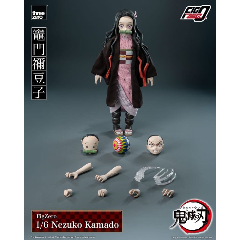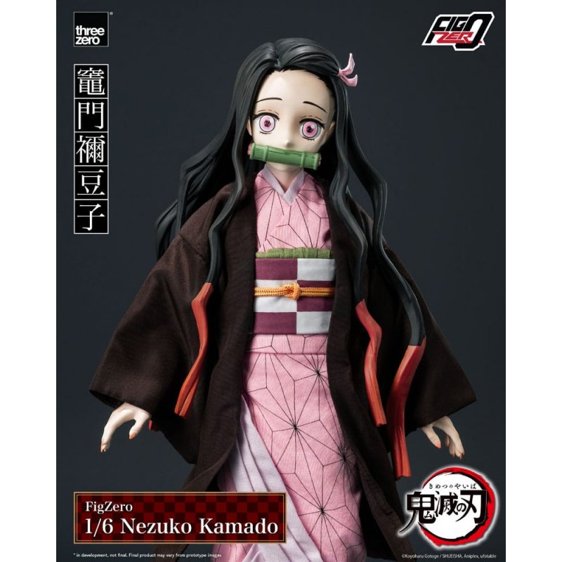 From the phenomenal anime Demon Slayer: Kimetsu no Yaiba, the protagonist Tanjiro Kamado's sister-Nezuko Kamado-debuts in threezero's FigZero series!The FigZero Nezuko Kamado Sixth Scale Collectible Figure stands approximately 26.3cm (10.4 inches) tall and features approximately 34 points of articulation. Nezuko is dressed in a kimono made from threezero's exquisite fabric craftsmanship. The delicate pink kimono is adorned with Asanoha (hemp leaf) patterns, complemented by an obi belt, an obijime and an obiage. It is topped with a dark brown haori and paired with kyahan (leggings) and tabi socks with zori (sandals), perfectly recreating her iconic appearance as seen from the anime.Some of Nezuko's orange-red hair tips have embedded wires for adjustable hairstyles. Additionally, the kyahan (leggings) are embedded with magnets, allowing the magnetic handball to attach to the kyahan (leggings).The figure comes with various interchangeable faces, and the iconic bamboo tube Nezuko holds in her mouth is also included. Also included is a pair of attacking effect parts that can be used with Nezuko's demon face and the interchangeable demon art arm with hands, recreating the scene of her attack.Specifications:FEATURES- 1/6th scale, approximately 26.3 cm tall - Approximately 34 points of articulation - Exquisite clothing and appearance - Some of Nezuko's hair tips have embedded wires COSTUME- 1 kimono made of fabric with obi belt, obiijime, and obiage - 1 haori made of fabric - 1 pair of Kyahan (leggings) with magnet - 1 pair of tabi socks with zori (sandals)ACCESSORIES- 3 interchangeable faces: One (1) standard face (with bamboo tube), One (1) comical blank face (with bamboo tube), and one (1) demon face - 1 pair of attacking effect parts - 1 handball with magnet - 4 sets of interchangeable hands: One (1) pair of fists, One (1) pair of relaxed hands, one (1) pair of pose hands, and one (1) pair of interchangeable demon art arm with hands
