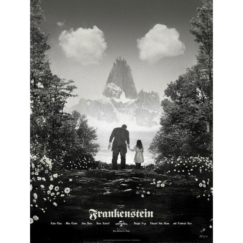 "Would you like one of my flowers? You have those and I'll have these." - Little Maria (Frankenstein, 1931)Sideshow Art Prints presents the Frankenstein Movie Poster by artist Greg Ruth. Originally a gallery-exclusive release as part of the Sideshow x CODA Universal Monsters event, this officially licensed fine art print is now available to fans through Sideshow, capturing the melancholy terror of Boris Karloff's iconic performance as the monster in Frankenstein (1931).An act of tenderness will soon turn to tragedy as Frankenstein's monster and an innocent girl approach the edge of a lake. Hand in hand with the outcast creation, young Maria shows him the goodness of humanity and the beauty of flowers. But this idyllic, monochromatic moment isn't without its dangers - Greg Ruth cleverly infuses a looming sense of dread into aspects of the scene's horizon. After all, for Frankenstein's monster, death cannot be separated from life.Each Frankenstein Movie Poster features an embossed Sideshow Seal of Authenticity as a part of the limited edition of 250 pieces. Faithfully reproduced from an original graphite and ink illustration, this Universal Monsters movie poster is offered as an unframed, full bleed fine art print or in a custom black framed presentation with a wire hanger, framing grade clear acrylic, and certified archival materials. Don't miss your opportunity to bring home a piece of the legacy and collect unique alternative movie posters of your favorite cinema creatures through Sideshow.Bring new life to your collection today with the Frankenstein Movie Poster by Greg Ruth.Print details: - Officially licensed by Frankenstein - 61 x 46 cm fine art giclée print - 100% cotton, acid-free, matte Museo - Rag 260GSM - Epson archival inks - Automated artist signature - Embossed seal of authenticity