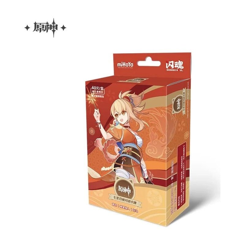 This is a pre-built starter deck for the Genshin Impact Trading Card Game by HoYoverse. This deck features the character Yoimiya from Series 3. Each Starter Deck contains 40 cards: 3 Character Cards, 30 Action Cards, and 7 Accessory Cards.
