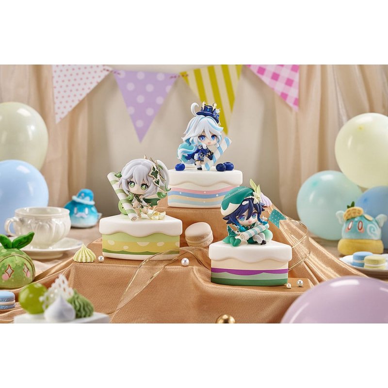 From the game "Genshin Impact" comes adorable chibi figures of Venti, Zhongli, Raiden Shogun, Nahida, Furina and Mavuika! The cake-inspired base can also be used as storage. Be sure to add them to your collection!