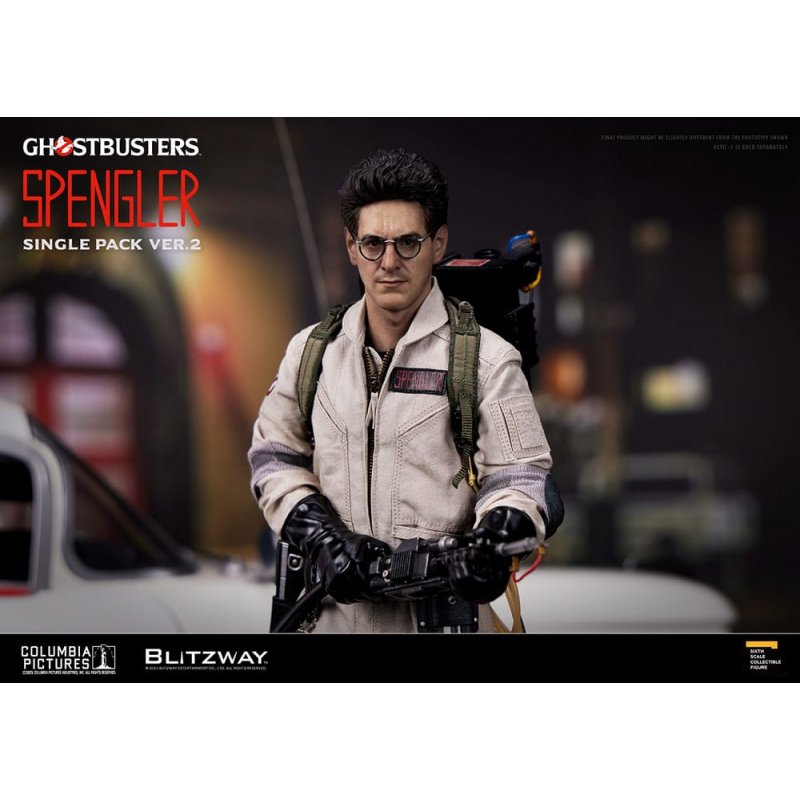 Introducing the BLITZWAY Ghostbusters 1/6 Scale Action Figure Series 'ver.2,'!Originally released in 1984, Ghostbusters remains a beloved classic, blending supernatural comedy with a fresh and imaginative universe.The Ghostbusters ver.2 lineup returns with upgraded head sculpts that capture each character's unique personality, interchangeable parts for dynamic posing, Moving Eye technology, screen-accurate costumes, and magnetic bases for enhanced stability.This figure captures Egon's sharp analytical skills and intellectual presence, with a carefully detailed sculpt of his sharp facial features, intelligent expression, and signature round glasses.His jumpsuit and boots have been precisely recreated to match the color, texture, and detailing of the original film costume-including the name tag on the left chest. The utility belt, proton pack and the P.K.E. Meter (Psychokinetic Energy Meter), a key device used by Egon to detect paranormal energy.The figure includes a magnetic base for added stability, allowing a wide range of dynamic poses using its articulated joints. Combined with the Moving Eye feature, Dr. Egon Spengler brings even greater realism and expression to your Ghostbusters collection.Product Specifications:HEAD Highly detailed likeness of 'Harold Ramis' as' Egon Spengler' from the original Ghostbusters 1) Standard HeadHANDS - Normal hands 1) 1 Pair of Standard Hands 2) 1 Right Hand for holding the P.K.E. Meter 3) 1 Left hand for holding a cigarette - Gloved hands 1) 1 Pair of Standard Gloved Hands 2) 1 Pair of Gloved Hands for Holding the Neutrona Wand 3) 1 Right Gloved Hand for Holding the RadioCOSTUME 1) 1 Khaki brown Flight Suit with Name Tag and 'No Ghost' Patch 2) 1 Black T-Shirt 3) 1 Pair of Jump Boots 4) 1 Pair of Elbow PadsACCESSORIES 1) Proton pack with LED Neutrona Wand 2) 1 set of Proton Beam Effect (attachable to the Neutrona Wand) 3) P.K.E Meter (P.K.E Gauge) 4) Glasses 5) Wristwatch 6) Radio with Holster 7) Lit Cigarette 8) Yellow Rubber Connector 9) Light Gray Pistol Belt 10) 2 Key Fobs 11) Belt Gizmo with Holster and Daughterboard 12) Magnetic BaseBattery Type* CR2032(Lithium Battery) x 2pcs (not included)
