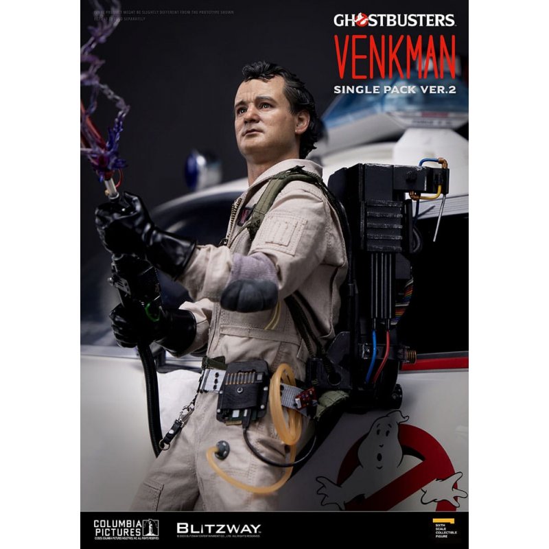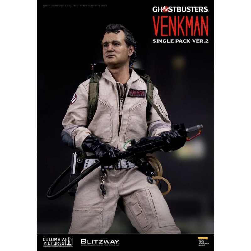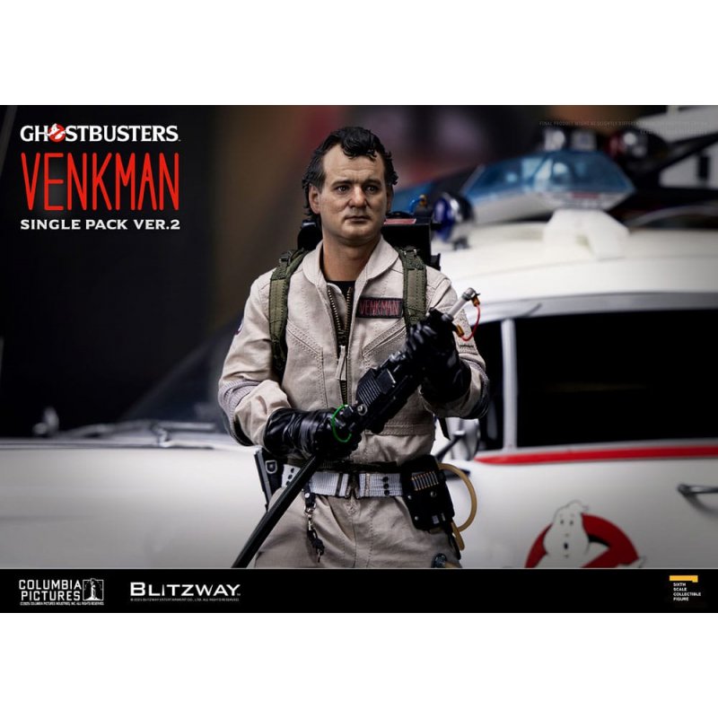 Introducing the BLITZWAY Ghostbusters 1/6 Scale Action Figure Series 'ver.2,'!Originally released in 1984, Ghostbusters remains a beloved classic, blending supernatural comedy with a fresh and imaginative universe.The Ghostbusters ver.2 lineup returns with upgraded head sculpts that capture each character's unique personality, interchangeable parts for dynamic posing, Moving Eye technology, screen-accurate costumes, and magnetic bases for enhanced stability.Capturing the witty and charismatic personality of his on-screen character, Dr. Peter Venkman is sculpted with a confident expression tinged with a hint of sarcasm, bringing his iconic attitude to life with remarkable realism.His jumpsuit and boots have been precisely recreated to match the color, texture, and detailing of the original film costume-including the name tag on the left chest. The utility belt and proton pack feature meticulously reproduced wiring, adjustable straps, and screen-accurate configurations.The figure includes a magnetic base for added stability, allowing a wide range of dynamic poses using its articulated joints. Combined with the Moving Eye feature, Dr. Peter Venkman brings even greater realism and expression to your Ghostbusters collection.Product Specifications:HEAD Highly detailed likeness of 'Bill Murray' as 'Dr.Peter Venkman' from the original Ghostbusters 1) Standard HeadHANDS - Normal hands 1) 1 Pair of Standard Hands 2) 1 Left hand for holding a cigarette - Gloved hands 1) 1 Pair of Standard Gloved Hands 2) 1 Pair of Gloved Hands for Holding the Neutrona Wand 3) 1 Right Gloved Hand for Holding the RadioCOSTUME 1) 1 Khaki brown Flight Suit with Name Tag and 'No Ghost' Patch 2) 1 Black T-Shirt 3) 1 Pair of Jump Boots 4) 1 Pair of Elbow PadsACCESSORIES 1) Proton pack with LED Neutrona Wand 2) 1 set of Proton Beam Effect (attachable to the Neutrona Wand) 3) Wristwatch 4) Radio with Holster 5) Lit Cigarette 6) Yellow Rubber Connector 7) Light Gray Pistol Belt 8) 2 Key Fobs 9) Belt Gizmo with Holster and Daughterboard 10) Magnetic BaseBattery Type CR2032(Lithium Battery) x 2pcs (not included)