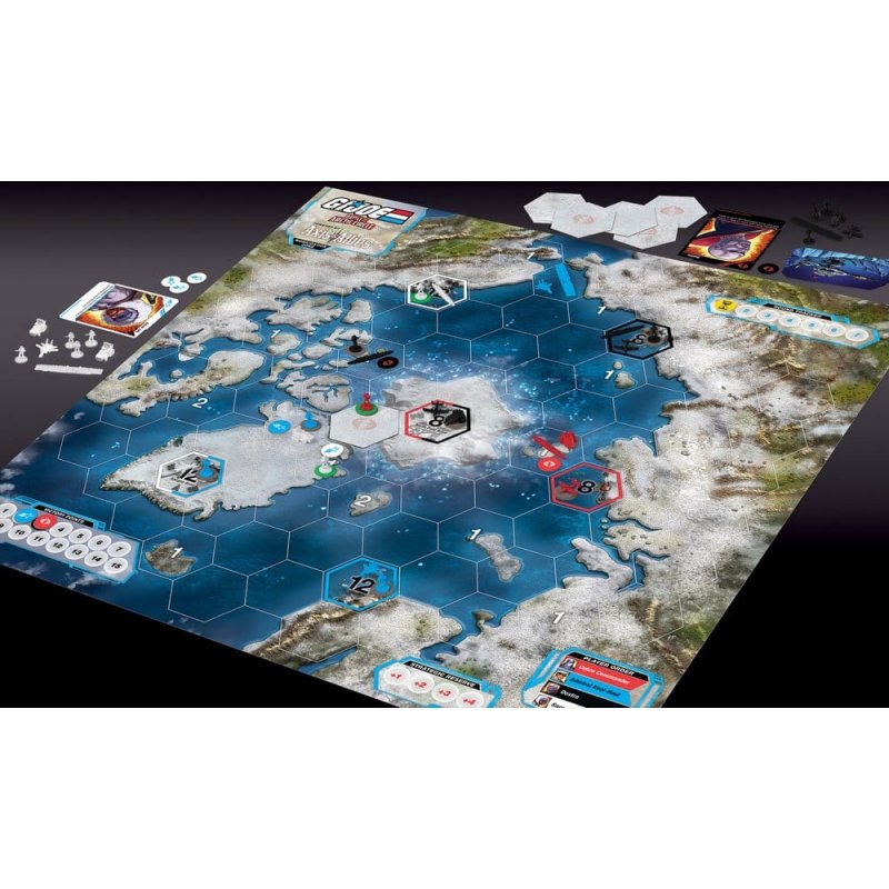 Cobra has established a base at the North Pole and threatens the world with its Weather Dominator! Only G.I. Joe is ready and able to defeat these forces without drawing the entire world into a larger conflict. Admiral Keel-Haul and Snow Job lead the Joes against the aggressive forces of Cobra, led by Cobra Commander and Destro!This game contains over 100 plastic miniatures and has classic Axis & Allies gameplay with G.I. JOE twist! The Air, Land, and Sea of the Arctic Circle is the battlefield. Are you ready for a fight?Features- Classic Axis & Allies gameplay with easy to learn, deep strategy! - Includes 3 scenarios! - 2-4 players play as Joes or Cobra to fight for control of the Arctic Circle! - Over 100 figures! - Use the Weather Dominator to freeze the sea to block pathways, or create strategic land bridges!Contents- 1 Game Board - 1 Rulebook - 1 Weather Dominator Token - 8 Ice Hex Tokens - 15 Cobra Faction Control Tokens - 1 Round Tracker Token - 15 GI Joe Faction Control Tokens - 2 Player Aids - 4 Oversized Leader Boards - 20 G.I. JOE Trooper Minis - 20 Snow Serpent Trooper Minis - 12 Snow Cat Vehicle Minis - 12 W.O.L.F Vehicle Minis - 10 Skystriker Aircraft Minis - 10 Rattler Aircraft Minis - 8 Aircraft Carrier Minis - 10 Cruiser Ship Minis - 8 D6 Dice - 48 Plastic Poker Chips - 2 Plastic BagsAt a Glance- For Ages: 14+ - Game Type: Strategy - Players: 2-4 - Game Length: 90 minutes
