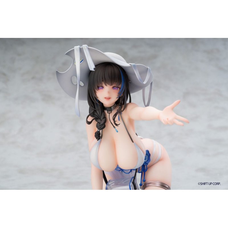 The charming statue from 'Goddess of Victory: Nikke' is approximately 17 cm tall and is made of PVC. It comes with a base and other accessories.