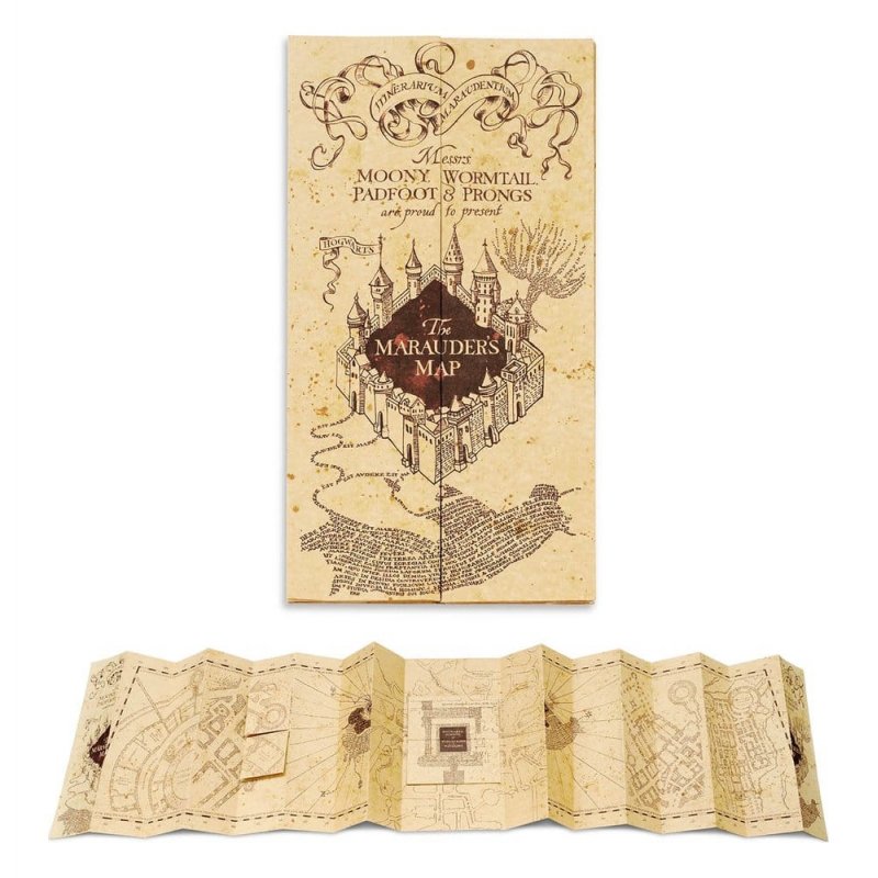 - Full-scale map of the Marauder, printed on high-quality special paper - The fold lines are slightly creased, allowing the map to be opened and closed as many times as desired without damaging the paper - Closed dimensions: 21 x 39.5 cm - Open dimensions: 185 x 39.5 cm