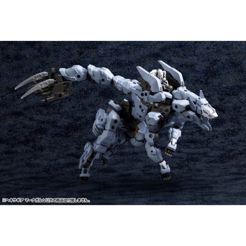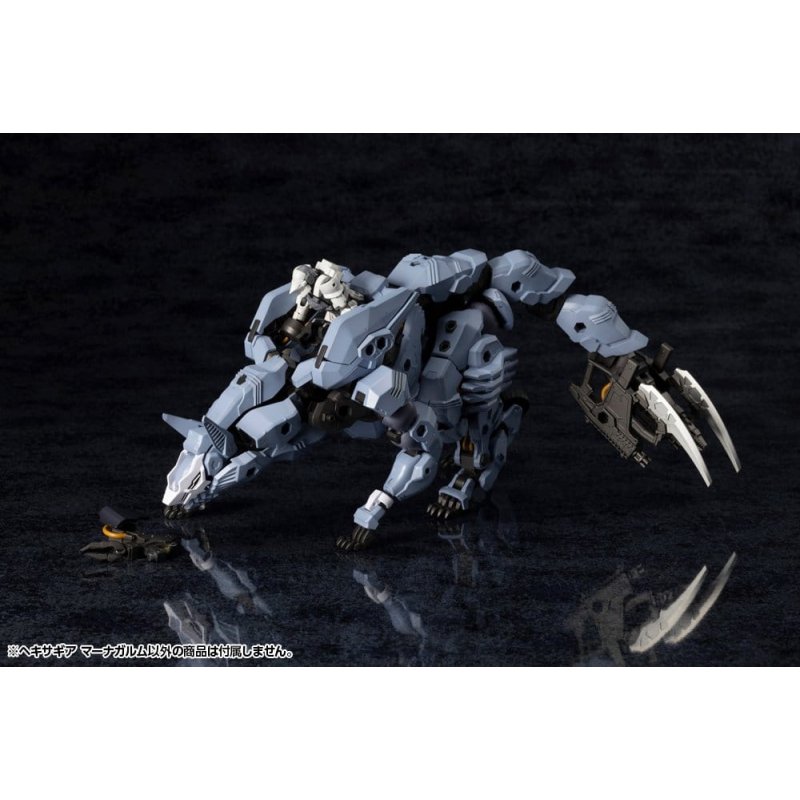 Combat preparation complete. Start your engines.The demon wolf equipped with a forbidden system conversion has finally arrived! This kit is equipped with a complete transformation mechanism that allows it to change between Zoatex Mode and Humanoid Mode with a Governor on board. With legs that retain a strong beast-like design, highly articulated arms, and a tail that also functions as a third arm, aggressive action poses are possible!Model Specifications:- A variable-type HEXA GEAR with an overall length of approximately 330mm in Zoatex Mode and a height of approximately 185mm in Humanoid Mode. - A variety of separately sold Governors (pilots) can be seated in the cockpit installed in the torso. - In Humanoid Mode, the weapon-holding hand parts and large range of movement at the base of the arms allow for realistic handling of various equipment, including M.S.G weapons and booster packs. - The knuckle daggers can be mounted on the two included hand gatling guns in two different orientations at the front, enabling configuration suited to any combat situation. The knuckle daggers can also be used independently. - The tail features multiple joints, and when combined with the movable manipulator at the tip, supports dynamic posing. - The Air Maneuver Thrusters on the back can be deployed in all forms. - The wheel mechanisms in the legs can be deployed. - Due to its full-body HEXA G-R.A.M System, the model can be combined with existing HEXA GEAR to construct mecha of various shapes.Included Items:- 1 x Main Model - 2 x Hand Gatling Gun - 2 x Knuckle Dagger - 2 x Spare Magazine - 1 x Set 4 Types of Hand Parts (Left and Right Each) - 1 x Archive Card