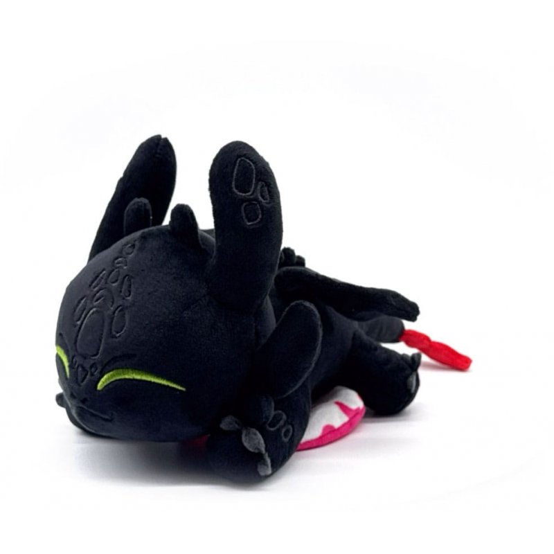 Now it's Toothless's turn to ride you with our brand new plush! Laying down at 6 inches long as they look out playfully with bright green eyes and just the cutest smile as a pair of thick ears point backwards, his arms and legs are flung out lazily as small scales pattern their black forehead and lead into spines that run down their back to a red and black tail while a pair of wings poke out from their shoulders. This plushie is made of the softest minky material, is packed to the seams with the most huggable squishy 100% PP cotton and comes equipped with a magnetic disc to let it perch firmly atop your shoulder as the best accessory while racing on your dragon!About How to Train Your DragonHow to Train Your Dragon is an animated movie and series produced by Dreamworks which is based on the novel by Cressida Cowel. The story follows a young viking named Hiccup who befriends a mysterious dragon who he names Toothless and his journey to change the minds of his people to show not all dragons are to be feared!