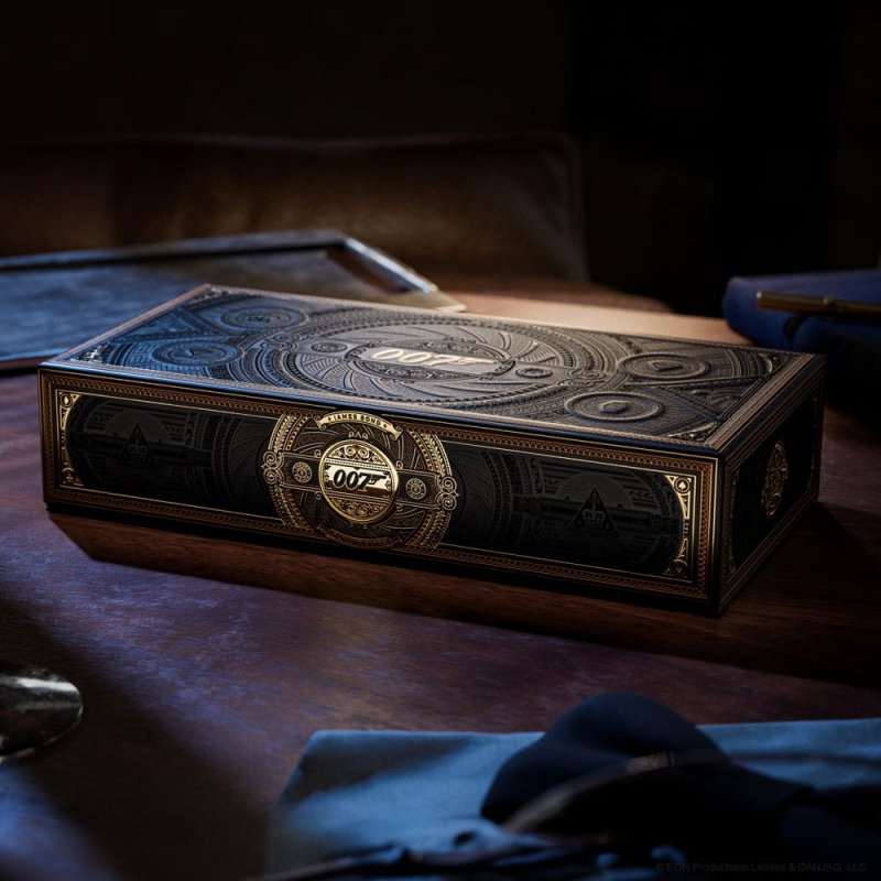 A special edition box set with a secret compartment, unlocked using a solid brass, handcrafted 007 pen. Inside are three decks of James Bond GOLD Edition Playing Cards.The Box Set Contains: Three GOLD Edition Decks, 007 Brass Pen, and a custom-engineered box with a secret compartment worthy of a design by Q.The special edition box set operates like a secret gadget engineered by Q for James Bond. Opening the lid will reveal a ballpoint pen - machined from a solid piece of brass, with a bolt-action piston. Inside, the pen features a German ballpoint cartridge for effortless writing. But that's not all.After discovering the secret mechanism, your box set will then open to reveal three stunning, special edition decks of 007 Playing Cards - the box, back design, and faces of each deck are all shrouded in gold foil.- Premium playing cards - Packaging: Collector's Edition Box - Set of 3 x 52-card deck, perfect for Poker - Made in America