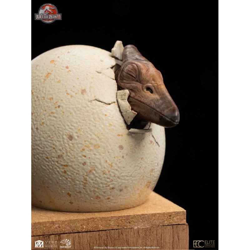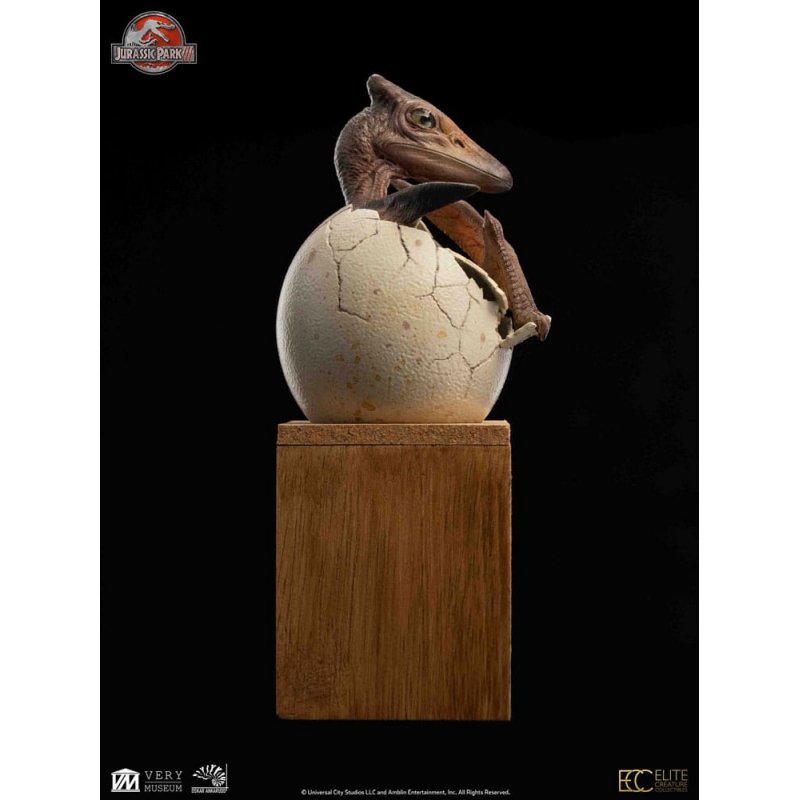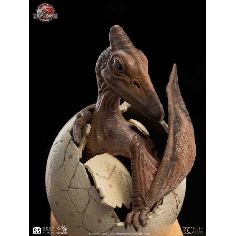 Elite Creature Collectibles proudly presents the Jurassic Park III Hatching Pterosaur in collaboration with artist Oskar Ankarudd. This is the 3rd volume of 1/2 scale hatching Dinos. The set of installation displays 3 stages of hatching, from a cracking egg to an emerging Pterosaur baby. Specifications: - Approximately 6.4 inches (16.2 cm) in height. (egg with base). - Approximately 2.8 inches (7.2 cm) in width. (egg with base). - Approximately 2.6 inches (6.6 cm) in depth. (egg with base). - Cast in high-quality resin with hand-painted details. - Eggs are removable from the base. - Glass eyes. - Museum style base. - Each piece comes with a metal plaque signed by Oskar Ankarudd. - Print of sketch "Hatching Pterosaur", Artist's ONE-OFF original manuscripts will be randomly sealed into one of the editions, means there is a 1% chance of winning an original painting by artist Oskar Ankarudd! Limited to 99 pieces worldwide.