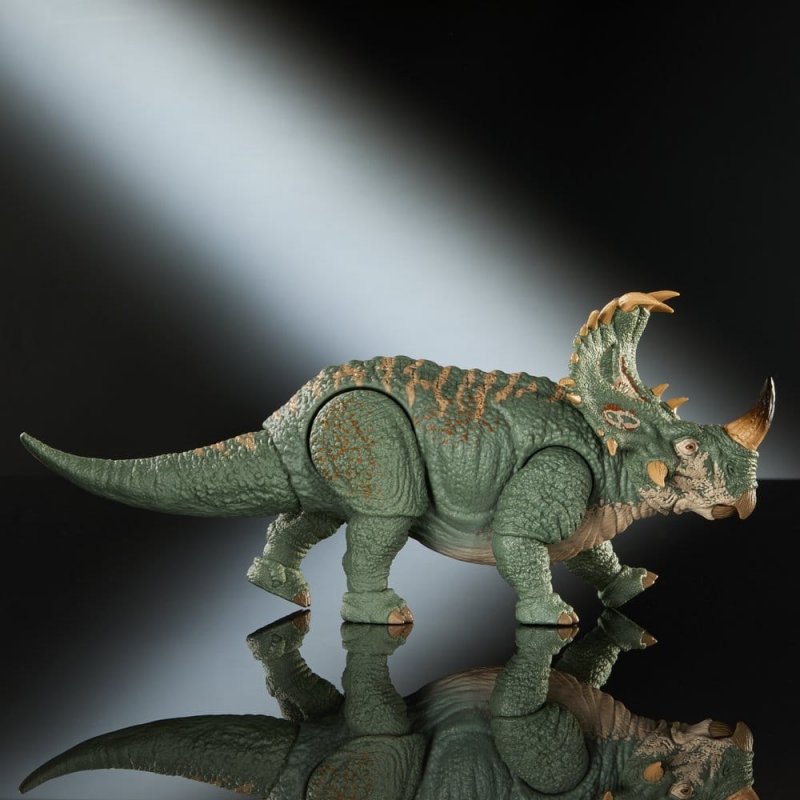 The Jurassic World Hammond Collection has set a new standard for collectible figures with complex points of articulation and lifelike details. This film-accurate Sinoceratops is inspired by the unforgettable lava scene in Jurassic World: Fallen Kingdom. This approximately 30 cm long figure features interchangeable horns. One horn is broken off and one is intact. In addition, the lower jaw can be replaced to realistically open and close the mouth. Authentic details include realistic eyes, a movable tail and 14 points of articulation. This Sinoceratops is an absolute must-have for collectors aged 8 and up. Colours and design may vary.