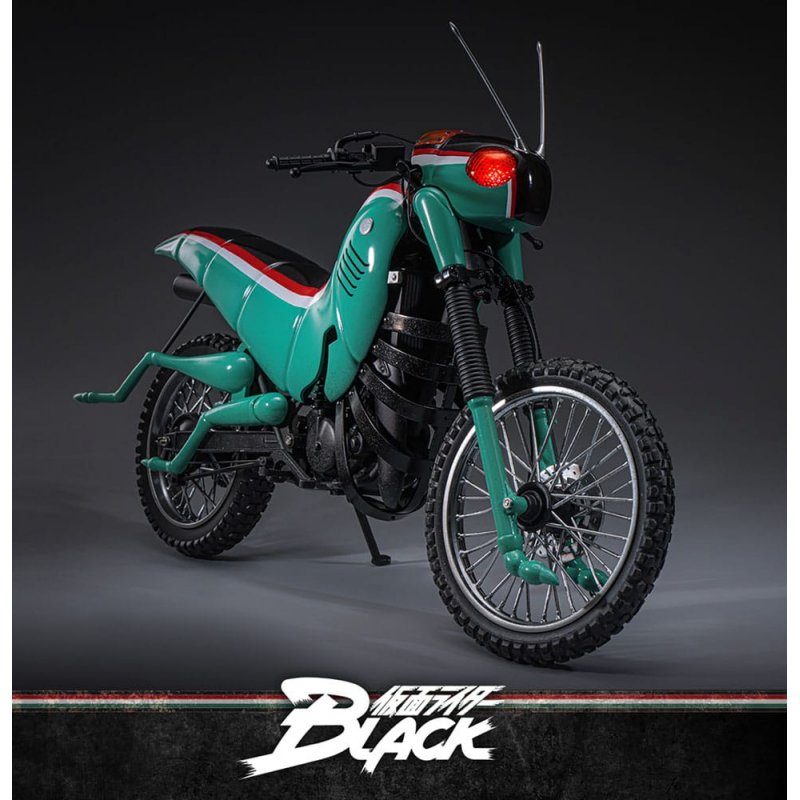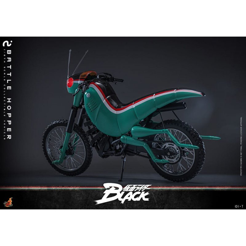In the classic 1987 series Kamen Rider Black, Battle Hopper is more than just a motorcycle, it's a living, loyal partner to Kotaro Minami. Created by Gorgom for the Century Kings, this grasshopper-themed Rider Machine aids Kotaro in his dramatic escape from the cult and supports him through countless battles. Battle Hopper possesses the ability to self-heal when harmed and can right itself if knocked over. With these remarkable abilities, it stood out as a true comrade to Kotaro. During the showdown, Battle Hopper sustained heavy damage, earning a heroic farewell and solidifying its place as a true legend.Sideshow and Hot Toys are thrilled to present the Battle Hopper Sixth Scale Collectible Vehicle, a faithful and finely detailed tribute to this iconic Rider Machine. Measuring approximately 36?cm long, 14?cm wide, and 21?cm tall, the model showcases authentic mechanical features, from the engine, frame, and exhaust to side stands. Battle Hopper is finely painted in shiny green, red, and white color schemes. The grasshopper-inspired exterior includes long antennae, grasshopper legs, and headlights with LED-lit red light that imitates the eyes. Features such as rear spring suspension and rotatable wheels with dirt-weathered tires show expert craftsmanship.This collectible vehicle is perfectly sized to complement the Kamen Rider Black Sixth Scale Figure. Together, they are ready to fight and recreate the classic wheelie special move! It captures every iconic feature and nostalgic moment, ensuring that no Rider collection is complete without Kotaro's fearless companion.Product size: 21 x 14 x 36 cmKamen Rider figure not included.