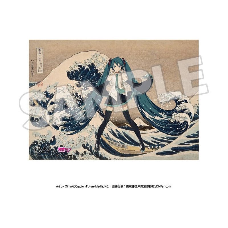 Katsushika Hokusai, who is said to have produced more than 30,000 works over the course of his artistic career some 260 years ago, continues to captivate people around the world with his compositions and use of color. Even today, his works remain remarkably innovative, displaying an extraordinary range of styles and artistic expression.For this special collaboration, illustrator iXima depicts Hatsune Miku within the world of Katsushika Hokusai's artwork, creating a synergistic fusion of Hokusai's enduring artistic legacy and passion with Hatsune Miku's ever-innovative spirit.Comment from iXima: When drawing character illustrations, my main focus is capturing the essence of line art and translating objects and spaces onto a two-dimensional plane. I feel that ukiyo-e represents both the origin of this approach and one of its perfected forms. I am deeply honored to have been given this opportunity to showcase collaborative works alongside the great masterpieces and cultural traditions that have profoundly influenced me. Hokusai's paintings possess iconic expressions that define each piece-be it the waves in "The Great Wave off Kanagawa" or the cherry blossoms in "Fuji Seen from Goten-yama at Shinagawa, on the Tokaido." These elements blend exceptionally well with Hatsune Miku, who can take on countless forms when combined with different concepts. I thoroughly enjoyed creating this piece and hope it serves as a gateway for viewers to explore the worlds of both Hokusai and Miku.