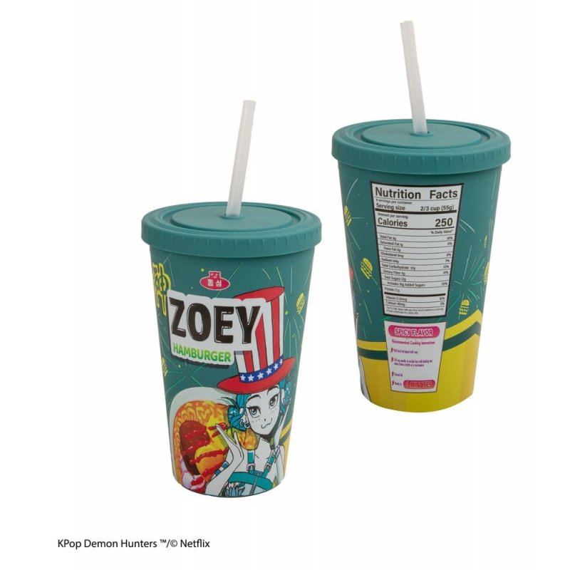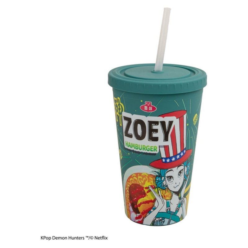 This KPop Demon Hunters Tumbler Zoey Hamburger is an officially licensed product from Cinereplicas. It is made of Plastic & PP. Size: 475 ml (16.1 oz)