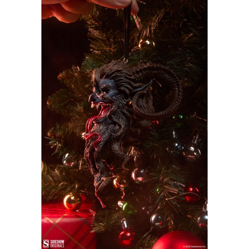 Gruss vom Krampus, geeks...Sideshow presents Der Krampus Ornament, bringing you a dose of holiday horror!Naughty children are punished with birch rods on Krampusnacht, but the good ones receive small gifts. If you hear the sound of rattling chains and clanging bells approaching, beware - your festive fate is already sealed. How will Krampus greet you?Der Krampus Ornament is a hand-painted, petrifying portrait of this famous folklore figure, measuring about 6.5" tall and 5" wide. His snarling face is framed by a massive, gnarled beard and curved horns, while his piercing gold eyes, pointed teeth, and winding tongue make him more scary than merry for anyone who encounters him on a cold winter's night. The back of this sculpted ornament features a silver Sideshow seal, seated atop a red bow with bells and pinecones to complete the iconic alpine aesthetic. A black fabric ribbon looped at the top of the portrait allows you to hang this unique Sideshow Originals Krampus collectible wherever you please.Hoof it on over and collect your very own Der Krampus Ornament from Sideshow, just in time for the holiday season.Size: approx. 17 x 13 x 24 cm