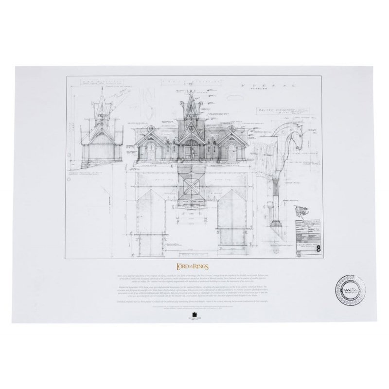 Weta Workshop was intrinsically involved in the design and physical effects manufacture for all three films of The Lord of the Rings™ trilogy.From the "Lord of the Rings" trilogy comes this reproduction of the original set plan as art print. The dimensions of the print are 59 cm x 42 cm. A lovely cinematic format.It's printed on good quality 170 gsm satin paper, it will arrive in pristine condition, ready to be framed and hung, pride of place, in your home.Size: 23.20" x 16.50" (W x H) 59cm x 42cm