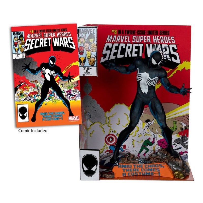 As awesome and striking as Spider-Man's new black costume is, you can't help but stare at the crazy super-brawl taking place behind Spidey- Inspired by: MARVEL HEROES SECRET WARS ISSUE no.8 Original Release Date: DECEMBER 1984 - 1:6th Scale Collectible with environmental base and backdrop scene - Includes Marvel Heroes Secret Wars no.8 comic book - Includes comic book and an art card with character artwork on the front, and comic synopsis