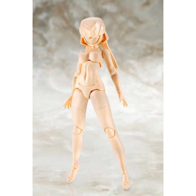 A new original series of base models comes to Megami Device, the plastic model kit series combining Bishoujo-style beauties and heavy-duty weapons and armor! B1R-L Chassis Kit Skin Color D joins the lineup!! This model is a remake by Masaki Apsy of the Block1 large sized standard body made for the early Megami models. It has been reborn as a simple chassis kit with improved mobility, proportions, and ease of assembly while also maintaining as much compatibility as possible with past characters in the series. The body comes in the large size used with the popular AUV series and includes two different types: the concept color and full-body skin color. These two configurations allow modelers to customize the color scheme and use the model as parts for other purposes in a wide range of ways. This model adopts the printed movable eyes featured in the B1R-M model, a first in the Megami Device series. These face parts can also be swapped with Block2's standard faces and hair from models like the Buster Dolls. Model Specifications: - This kit includes runners for the bodies in both the concept color and full-body skin color D. - In addition to the face with printed movable eyes, an unpainted face with blank movable eyes compatible with decals is included. - The chest, abdomen, waist, and toe sections include both detailed and less detailed parts, allowing modelers to customize the level of detail they want in the model. - The helmet allows the model's expression to be visible or not. The fins are articulated allowing for various poses. - Shoulder blades have been included for more compatibility. The chests from existing Megami Device models (prior to the Buster Doll series) can be swapped in by replacing the default shoulder blades. - Includes a back armament hanger with a 3mm compatible connector allowing existing parts to be attached, a tool resembling a blade for adjusting the eyes, and a stand for one-legged poses. What is “Megami Device?” Kotobukiya’s Megami Device series is a line of 14 cm (5½”) plastic model kits that come with a range of weapons and equipment that allow you to enjoy building and customizing your own Megami Device to use in robot battles. Each character has a main body, or “machineca,” designed by Masaki Apsy, while the models’ unique armor and mechanics are designed in collaboration with a variety of guest illustrators. The kits come with multi-colored parts and face parts pre-printed with tampography, making them easy to assemble with no paint required. The kits are equipped with 3mm joints, making them compatible with all of the weapons in the Megami Device line as well as Kotobukiya’s other plastic model kit series! Product Size: 16 cm