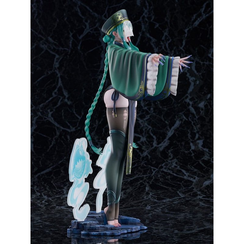 Scale figure rendition of "Hopping Vampire" drawn by the very popular illustrator VekSoo in a SFW Clothed Variant.The outfit, inspired by the original illustration, delivers both elegance and flair while staying true to the Kyonshi theme. The subtle meatiness of her chest and waist adds an especially alluring touch.For this Clothed Only variant, only the hat comes with an interchangeable part.Acrylic materials are used to create the ghostly effect, adding a sense of depth to the display. We hope you'll enjoy adding this cute Kyonshi to your collection.