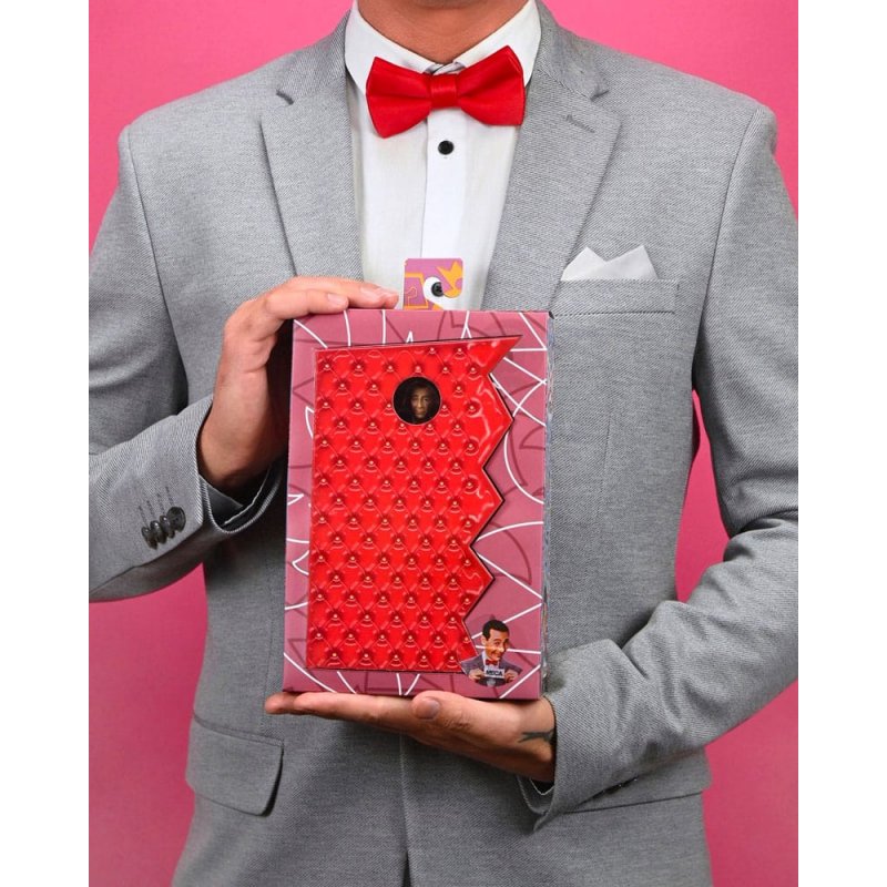Today's secret word is "Ultimate"! NECA is proud to present this Ultimate Pee-wee Herman action figure based on the late-'80s hit TV show Pee-wee's Playhouse!The beloved character created and performed by the legendary Paul Reubens is now a 7-inch scale, fully articulated figure ready to bring Pee-wee's quirky personality and fun-loving energy to your collection. The world of Pee-wee's Playhouse is a surreal and delightful place filled with toys, gadgets, talking furniture, and all his puppet friends!The figure includes three interchangeable and iconic expressions, multiple hands, "the secret word" papers, and his Playhouse pal, Pterri the pterodactyl! Comes in collector friendly, window box packaging with opening front flap.