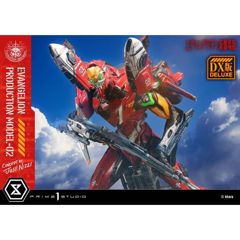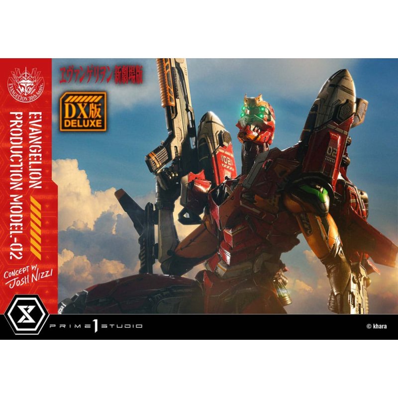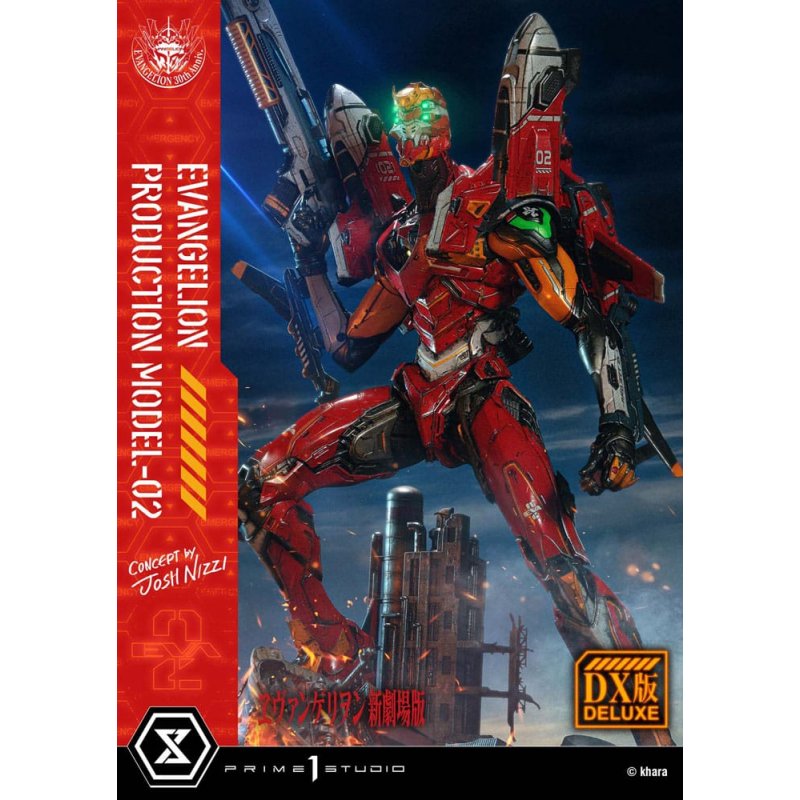 Crimson remembered. Mechanized mass redefined.EVA-02 launches-reimagined-under Battle Stations Condition One.Working alongside mechanical concept artist Josh Nizzi, the "Concept By Josh Nizzi" project draws out new dimensions of beloved characters. Now, from the " Evangelion" series, Evangelion Production Model-02 joins the lineup.This statue follows the lineage of the previously released Unit-01 and the Fourth Angel, blending bold mechanical reinvention with deep respect for the original design. Nizzi envisioned EVA -02 in the midst of battle, standing by the sea, ready to face an Angel. Armed in both hands, it strikes a dramatic pose, culminating in a heroic diorama display.The rebalanced proportions give the figure a more human feel, while detailed mechanical moldings and internal structures add a sense of purpose and precision. Design elements shared with Unit-01 further emphasize its place within the series. The body is finished in a crimson hue that fuses vivid anime tones with the subdued luster of heavy machinery. LED light-up features in its four eyes and chest further enhance the sense of presence, while the industrial shoreline-complete with a sunken tanker and rippling red sea-is rendered with striking realism.The Deluxe Version includes additional optional equipment: a jetpack with LED-illuminated thrusters, a cutter-type Progressive Knife showing signs of wear, and a deployed Thunder Spear with extended discharge arms. Experience the versatility that defines this "Production Model."EVA-02, reimagined through a unique creative lens-an impactful addition to any collection.Specifications:- 1 x Evangelion-themed Base - 1 x Swappable Head (Horned) - 2 x Pairs of Swappable Shoulders (Jetpack, Pylon) - 2 x Swappable Right Arms (Thunder Spear: Folded, Deployed) - 2 x Swappable Left Arms (For Swappable Left Hands, For Thunder Spear Holding) - 2 x Swappable Left Hands (Palette Rifle, Progressive Knife) - LED Light-Up Features (Eyes, Chest, Jet Nozzles) LED Power Supply Method: TBD * Please prepare batteries, USB cables, or other necessary items depending on the final power supply method.