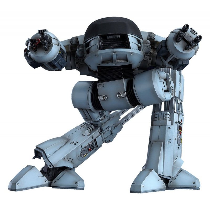 From the movie "ROBOCOP" comes a MODEROID plastic model of ED-209, the peacekeeping machine created by Omni Consumer Products. The model stands at around 20cm tall when completed. Its joints, pistons and slide rails are all articulated, allowing you to recreate intimidating poses and comical poses alike.The model kit is made of PS and ABS plastic with POM and PE used for some joints and features runners separated into four colors (light gray, silver, medium gray, dark gray). Wires have been used to recreate the cables connecting to its arms. Water-slide decals are included for further detailing. Preassembled joints are included, making the model easy to pose. Be sure to add it to your collection along with HAGANE WORKS ROBOCOP!