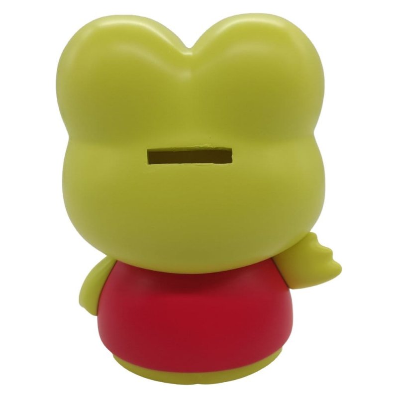 This is a 3D coin bank from the Sanrio license, featuring the character Keroppi. It is an officially licensed product.
