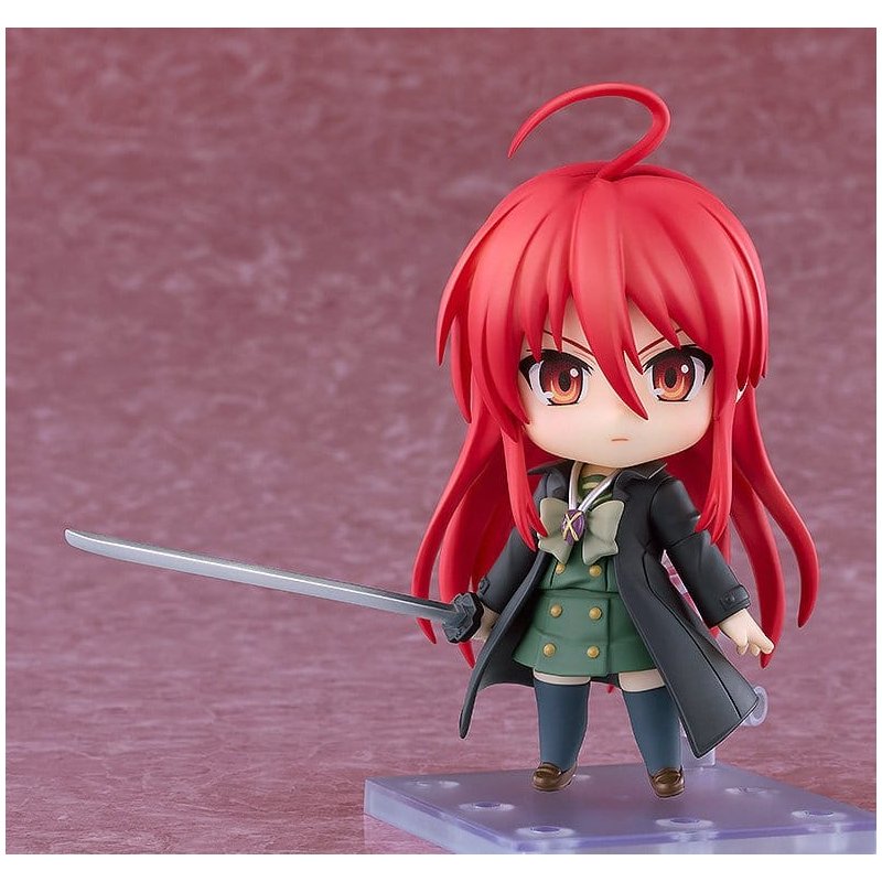 From the anime series "Shakugan no Shana III -FINAL-" comes a Nendoroid of the Flame-Haired Burning-Eyed Hunter Shana! Face plates: · Resolute face · Combat face · Smiling face Optional parts: · Nietono no Shana · Alastor · Wings of Crimson · "Judgement" background inner paperboard · Other optional parts for different poses.
