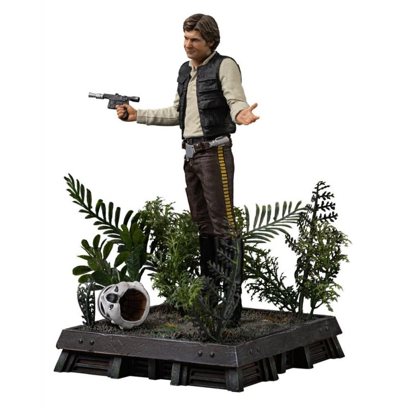 Who is Han Solo? Han Solo is one of the most iconic characters from the saga Star Wars: Episode VI &no.8211; Return of the Jedi. A charismatic smuggler and captain of the legendary Millennium Falcon, Han began his journey as a pragmatic mercenary but ultimately became one of the greatest heroes of the Rebel Alliance. Alongside Luke Skywalker, Princess Leia, and Chewbacca, he played a crucial role in the fight against the Galactic Empire. Known for his sarcastic humor, bravery, and piloting skills, Han Solo became a true symbol of space adventure. About the product: Produced by Iron Studios, the Han Solo &no.8211; Star Wars Episode VI&no.160;statue presents the hero in a classic pose inspired by his look in Return of the Jedi.&no.160;