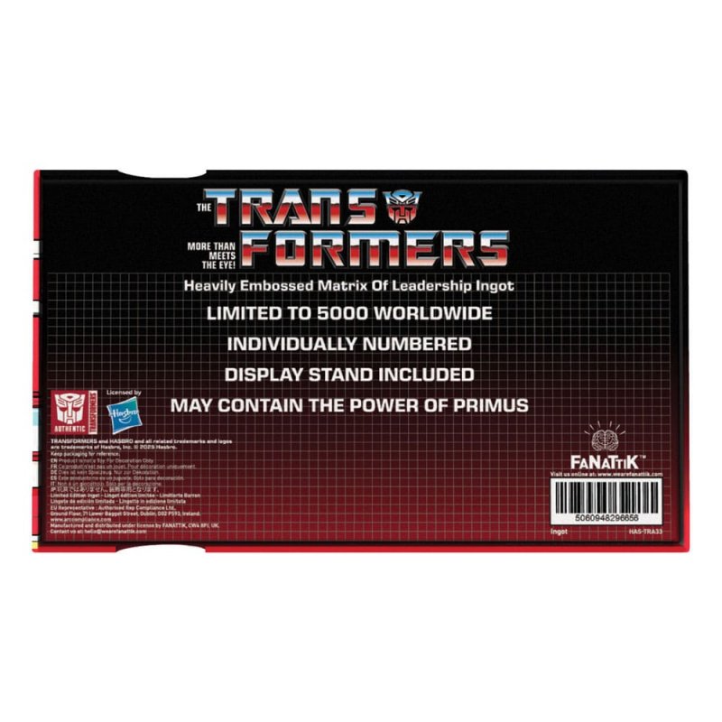 "Wield the power of Primus and claim your own Matrix of Leadership Replica! A conduit of wisdom, power, and resurrection, this special artifact has been used to defeat challenging Decepticon foe and turn the tide of battle in the Transformers universe.This replica has an edition size of 5,000 worldwide, and to ensure each is unique, has its own individual number found on the reverse. Whether displayed as the crown jewel of your collection or held in your hands like a true Prime, the Matrix is the perfect addition for any fan of the Cybertronian saga. - Officially licensed - Limited to 5,000 - Individually numbered - 140 x 90mm - Built for fans and collectors