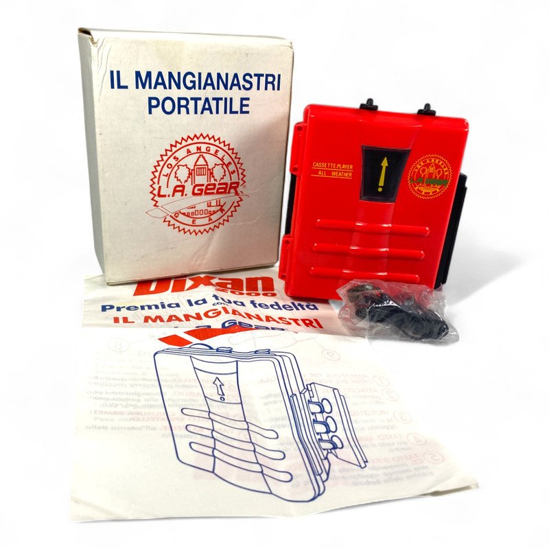 This is a vintage cassette player from 1992, released as a promotional item by Dixan 2000 in collaboration with L.A. Gear. It was only available in Italy as part of a special marketing campaign.
