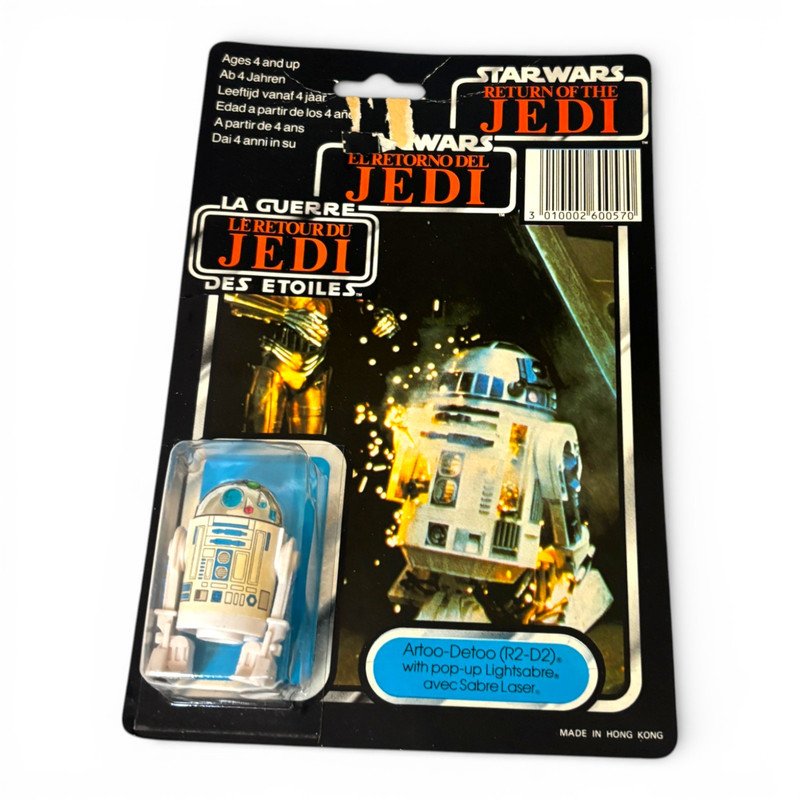 Last 17 R2-D2. Pop-up lightsaber feature. Trilogo 70B-Back card. Original card and bubble integration.