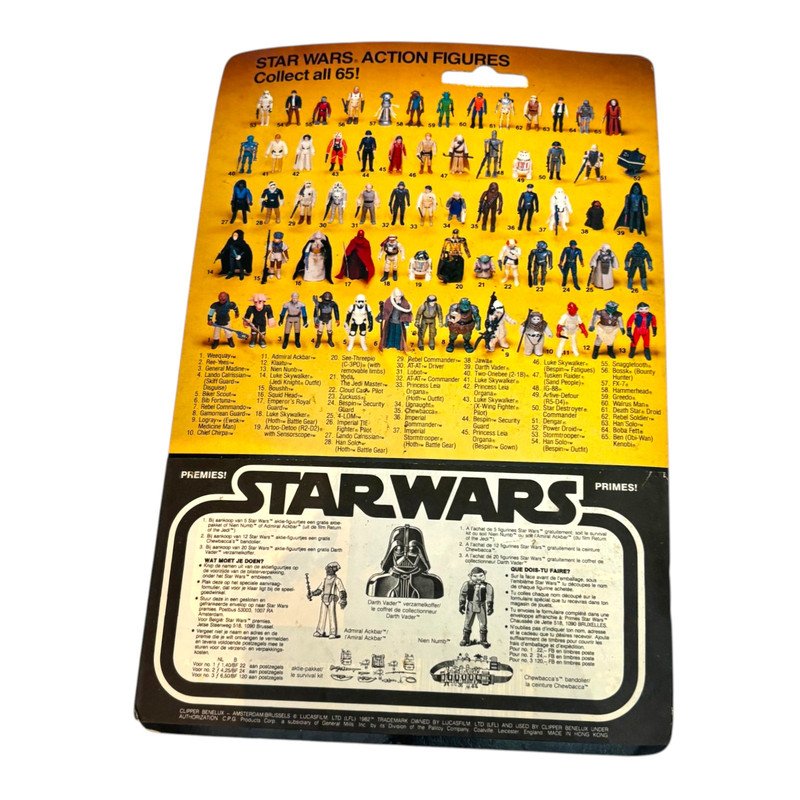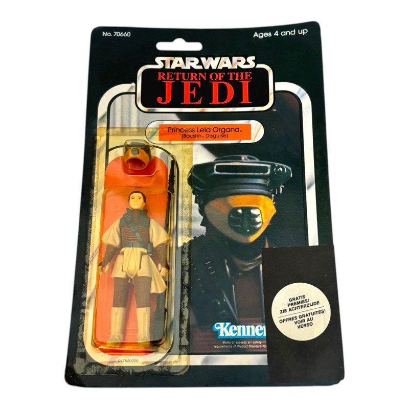 The Leia Boushh figure features the circular Dutch/French "Gratis Premies!" sticker on the front and the full black-and-white promotional wrap on the reverse.