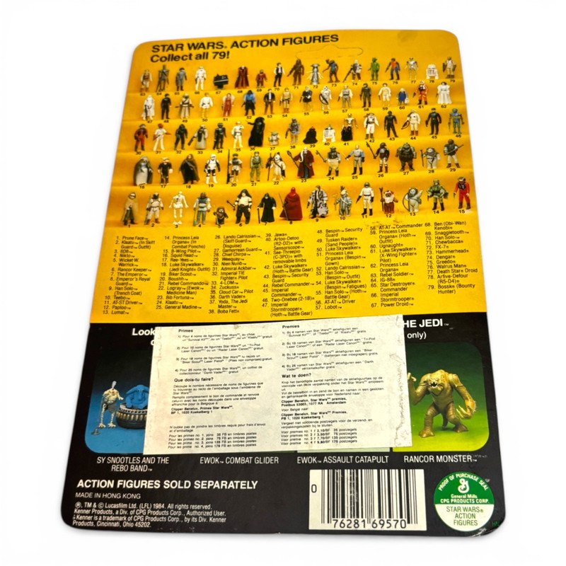 Unpunched Kenner 79A-Back card. Clipper Benelux promotional wrap on reverse. Original accessories secured in bubble.