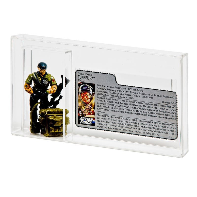 An innovative solution to display your most prized 3 ¾" loose G.I. Joe figure together with its file card. This case has become a proven favorite among collectors in the U.S. — and is now available on this side of the pond!
