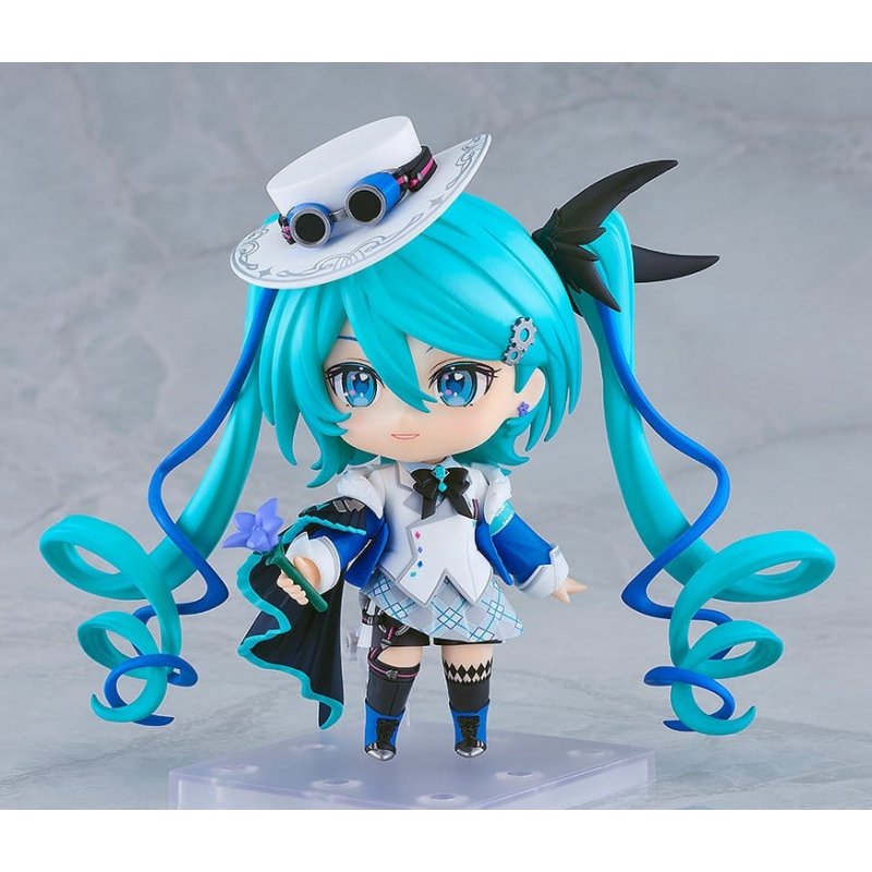 From "Character Vocal Series 01: Hatsune Miku" comes a Nendoroid of Hatsune Miku based on her appearance in the key visual of "MIKU WITH YOU", a concert event held in China.Face plates:- Smiling face - Sidelong glancing face - Winking faceOptional parts:- Cane - Grimoire - Takene - Other optional parts for different poses.
