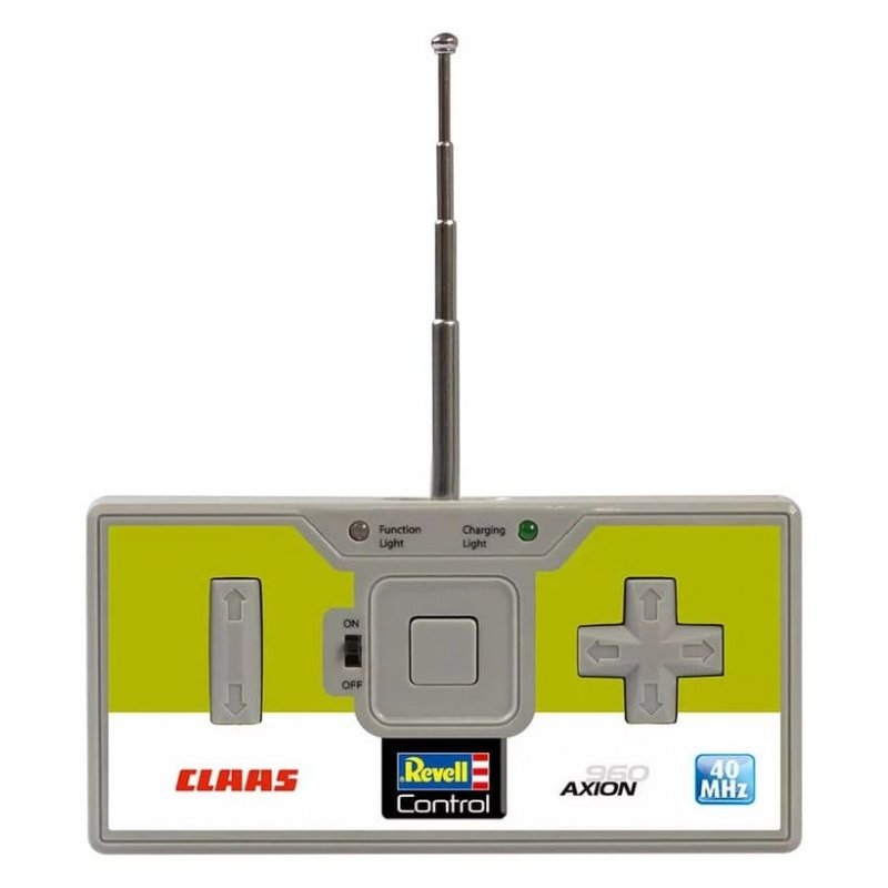 The remote-controlled Claas Axion 960 tractor in a small format is assembled in a few days during Advent. After a few minutes of charging directly on the remote control, it is ready for use and can be steered through the farm, because a cow, cat and chickens are just as much a part of this advent calendar as a farmer figure, fence elements and other accessories. Necessary batteries are included. The easy-to-use 2-channel remote control allows the tractor to drive in all directions and can also be operated by younger children. In addition, the tractor can also be moved manually to explore your own play worlds in the children's room. The mini RC model, a faithful replica, is just under 10 cm tall, fits in any jacket pocket and can be taken anywhere.Scope of delivery: Advent calendar with 24 doors, RC tractor kit, MHz remote control, farm animals, farm accessories, 2 x 1.5 V AA batteries, step-by-step instructions for assembling the tractor.Product Details:- Radio system: 40 MHz - Recommended age (according to packaging): 6+ - Number of control channels: 2CH Ground - Length (mm): 95 - Frequency channel MHz: 40 MHz - Range (m): 5 - Operating time (min.): 8 min. - Charging time (min.): 4 - Power supply model type IEC: NiMH