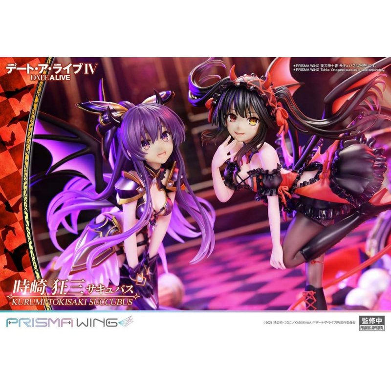 "Sweet and Dangerous Temptation! ""Nightmare"" in a Succubus-Style Figure From the ""DATE A LIVE"" anime series comes ""Kurumi Tokisaki"" in a succubus-style appearance. Her little-devil costume-inspired by her Astral Dress-is an original PRISMA WING design. Discover a slightly different side of ""Nightmare,"" and let her sweet yet perilous charm lure you in!Feature 01: Mysterious smile and silky-smooth skin. Twin tails captured as if in motion Her captivating heterochromatic eyes and porcelain-like skin tone are unmistakably Kurumi. The twin tails are sculpted in a dance-like moment, with clear parts used to convey a light, airy sense of movement.Feature 02: A cute yet alluring pose. Rich, tactile paintwork throughout Balancing on one leg, her pose blends sweetness with an enchanting allure. From the delicate frills to the softly blended gradients on the wings, every area features paintwork with a refined sense of texture.Feature 03: A large heart manifests from ""Nightmare"" and the ""Princess"" The base can be combined with the separately sold ""PRISMA WING DATE A LIVE Tohka Yatogami Succubus."" Together, their red and purple tails form a large heart, bringing the two Spirits' feelings to life on your display."Product Specifications:- Sepcial Base