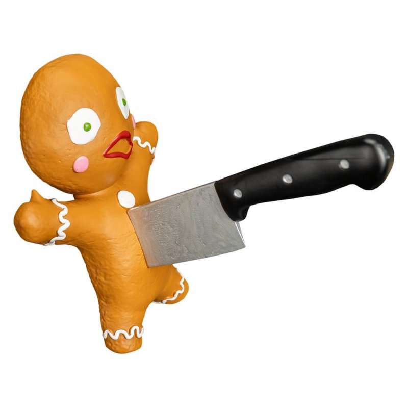 Trick or Treat Studios is proud to present the officially licensed Krampus - Gingerbread Man Magnet!From Michael Dougherty's holiday horror classic, this screen-accurate Gingerbread Man Magnet measures approximately 10" x 7" and is made of flexible foam latex with a durable plastic backer. The prop comes with a plastic knife accessory (secured but removable) and includes an inset wall hanger and magnet, giving you multiple display options: mount it on your fridge, display it on the wall, or keep it as part of your holiday horror collection.
