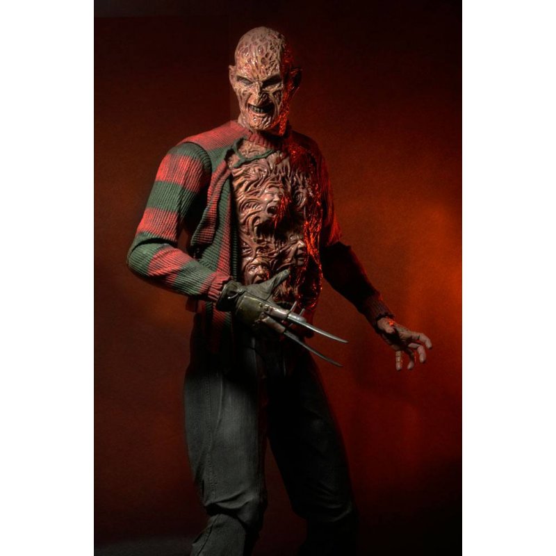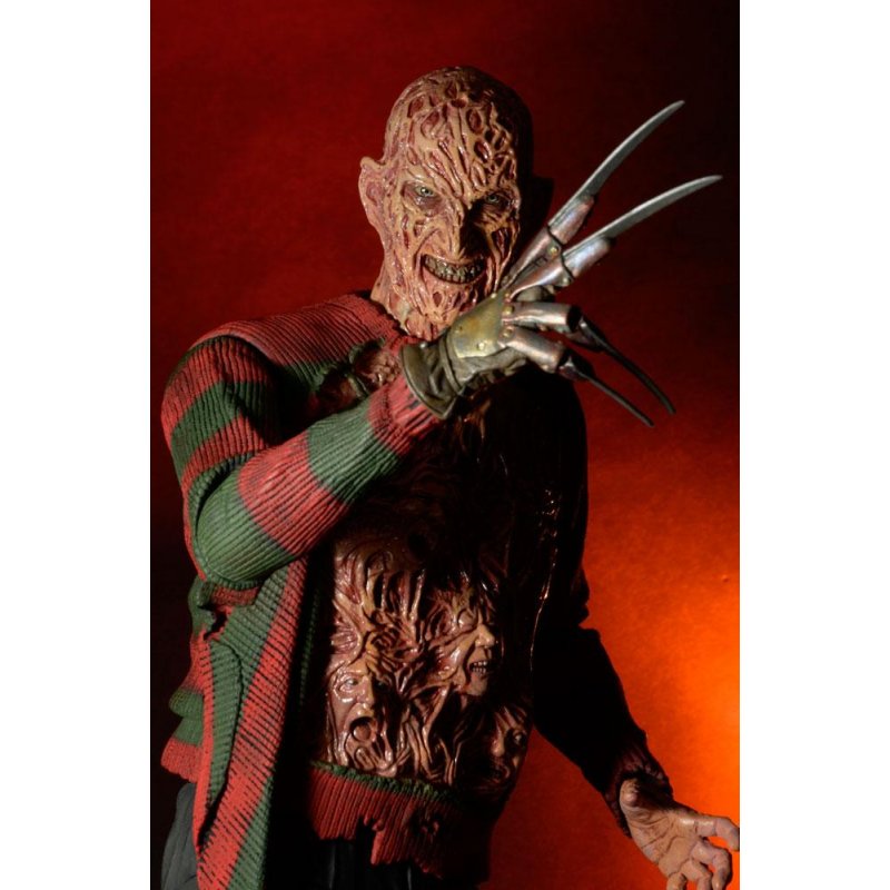 Introducing a new quarter scale action figure celebrating the 30th anniversary of the cult classic Nightmare on Elm Street Part 3: Dream Warriors!This new Freddy Krueger figure stands 45 cm tall and features plenty of gruesome detail, like interchangeable heads and chests to recreate different parts of the movie.You can swap out his regular sweater front to display the tortured spirits trapped in his Chest of Souls, or switch up his regular "evil Freddy" head with a "crucifix head" with light piping effect!He's equipped with over 25 points of articulation and comes in collector-friendly deluxe window box packaging.