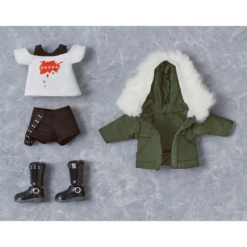An outfit set of Futaba Sakura's outfit.Set Contents:- Jacket - Top - Pants - Boots (with magnets in soles)*Please note that the actual figure and torso stand are not included with this product. *Displaying clothing on a figure for an extended period of time may result in color transfer to the figure body. *Please note that some Nendoroids, Nendoroid Dolls and outfits may not be compatible. *All items included with Nendoroid Doll Outfit Set: Futaba Sakura are also included with Nendoroid Doll Futaba Sakura.