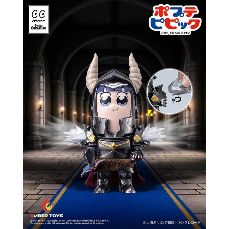 The second Pop Team Epic soft vinyl figure is here! From "Shining Shoulder" comes a POP UP PARADE figure of the Hero and the Wise Man!The "Chibi Creature POPUKO & PIPIMI: Shining Shoulder Ver." figures are faithful recreations of the hero and wise man in chibi proportions. The figures stand at 10cm and 15cm in height, and are finished with elaborate soft vinyl molding and paintwork by hand. Pipimi is wearing her Armor of Soulsteel while holding the Blood Gem. The Tiger Sword is also included. The shoulder parts of the armor are magnetically connected to the effect parts, allowing you to easily capture scenes from the anime.Wires are built into the edges of the cape, allowing it to be displayed as though fluttering in the wind. Popuko is clad in the Gargoyle Robe and equipped with the Rose Cane Her characteristic pigtails are removable, allowing you to place her hood over her head.Accessories: Popuko Figure x1, Popuko's Pigtails x2, Rose Cane x1, Pipimi Figure x1, Tiger Sword x1, Shining Effect x2