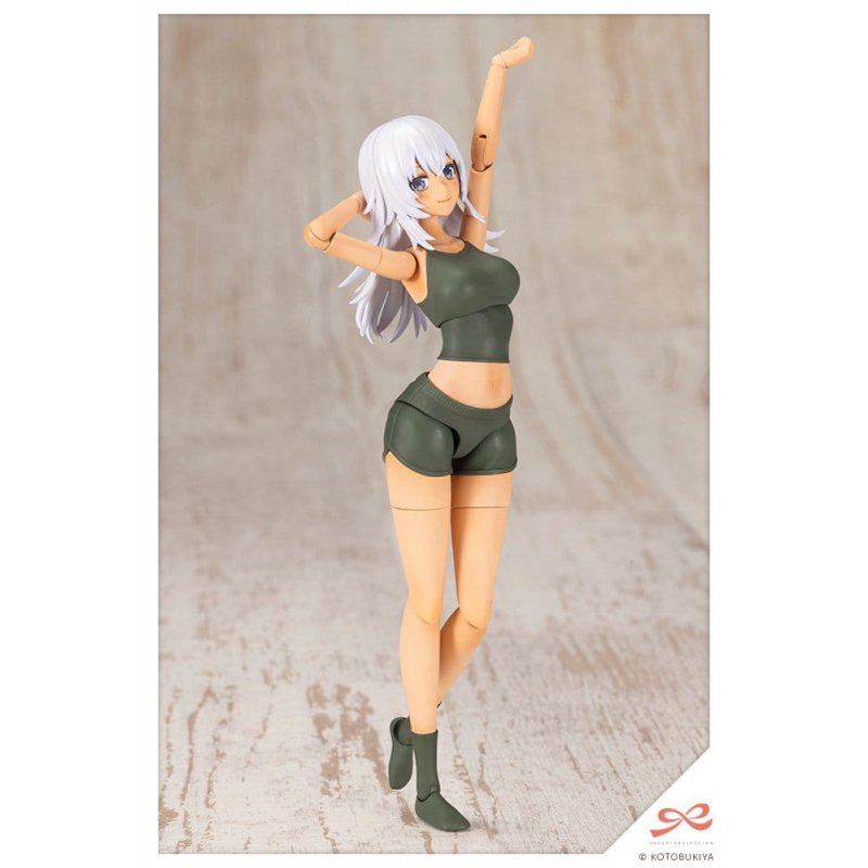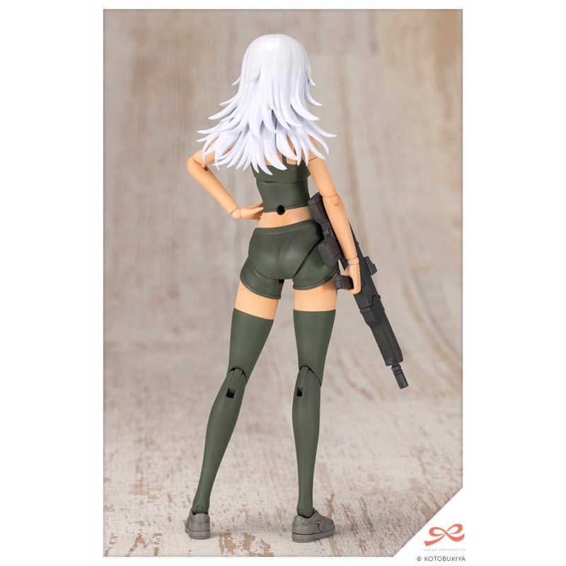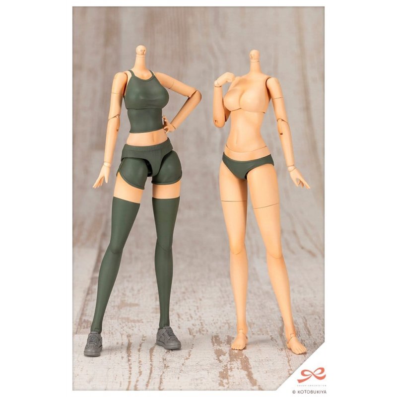 "Wolf from the SOUSAISHOJOTEIEN spin-off series returns in an unpredicted sun-tanned skin tone!Product Highlights!A Character in Skin Color D:The body uses Dress-Up Body?L?in a different color. Skin Color D gives the model a healthy, sun-tanned look. Two body types are included: the loungewear type dressed in a camisole and shorts, and the innerwear type that can be used with various separately sold doll outfits such as the Tiny Closet series (Kotobukiya Shop exclusive). The color of the innerwear and socks has been changed to khaki for a more stoic appearance.Selectable Sock Types:Three sock types can be selected: short socks, high socks, and thigh-high socks. The entire section below the knee is swapped when changing types. *The thighs for the short and high sock types are shared with the bare leg type.3 Different Length Neck Joints:The set includes three types of neck joints: Type A (for SOUSAISHOJOTEIEN), Type B (for Megami Device), and Type C (for regular doll clothes). Type B has a slightly longer neck than Type A to support use with Megami Device heads. Type C has an even longer neck than Type B to prevent it from being hidden under the clothing. The set also includes two types of ball joints: 5mm and 6mm. The 5mm type is compatible with SOUSAISHOJOTEIEN, ARCANADEA, Frame Arms Girl, and Megalomaria Unlimited Universe models, while the 6mm type is compatible with Megami Device models.Hairstyle:The ARRANGED WIGS WOLF LAYER CUT has been changed to white. The hairstyle creates a sharp, wild impression that matches well with the military themed body.Face Parts:Four expressions are included: Regular (Looking Left), Smug (Looking Right), Focused, and Glare. Each of them come in both pre painted and unpainted versions. Eye decals looking different ways are included, allowing users to create original expressions by applying them to the unpainted face parts.Included Weapon:A Weapon Unit 37 Assault Rifle 2 sculpted in black is included. The barrel can be swapped between long and short versions to support close to mid-range or mid to long-range use depending on the situation.Included Items:- 1 x Loungewear Body - 1 x Innerwear Body - Short Sock Leg Parts - Left and Right - High Sock Leg Parts - Left and Right - Thigh-High Sock Leg Parts - Left and Right - Bare Leg Parts - Left and Right - 12 x Types of Hand Parts (Holding (Standard)/Holding (Narrow)/Holding (Wide)/Holding (Round)/Closed/Pointing/Open/Elegant Open/Tense Open/Fist/Holding (Sword)/Holding (Gun)/) - Left and Right Each *Note that only one pair of each is included, meaning the loungewear and innerwear bodies cannot be displayed with the same type of hand parts simultaneously. - 1 x Neck Joint Type A Relax Wear - 1 x Neck Joint Type A Innerwear - 1 x Neck Joint Type B Relax Wear - 1 x Neck Joint Type B Innerwear - 1 x Neck Joint Type C Relax Wear - 1 x Neck Joint Type C Innerwear - 2 x 5mm Neck Ball Joint - 2 x 6mm Neck Ball Joint - Additional Ankle Joint - Left and Right Each - 2 x Chest Joint Spacer - 1 x Hairstyle (Wolf Layer Cut) - 1 x 2 Types of Bangs (Glasses/No Glasses) Each - 1 x Pre-painted Face Parts: Regular (Looking Left), Smug (Looking Right), Focused, Glare Each - 1 x Unpainted Face Parts: Regular (Looking Left), Smug (Looking Right), Focused, Glare Each - 1 x Decals Sheet - 1 x Weapon Unit 37 Assault Rifle 2