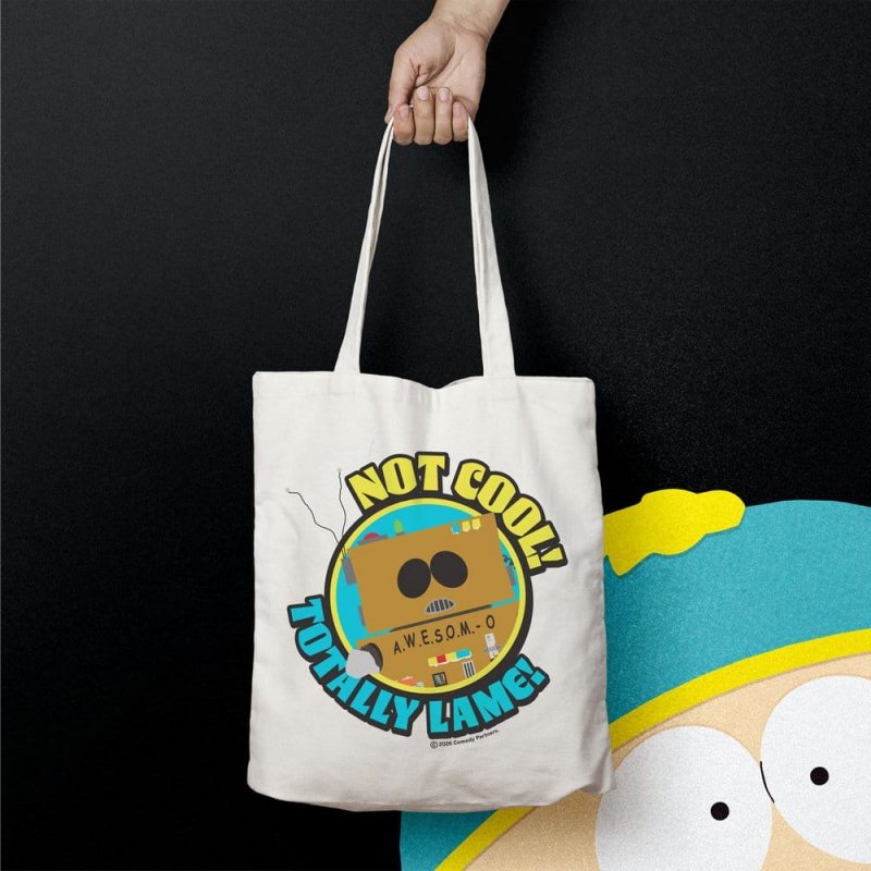 A.W.E.S.O.M.-O 4000 is the robot that gets delivered to Butters in South Park season 8, and comes with him on a trip to LA to see his aunt. This tote bag depicting AWESOM-O is printed in the UK, is made from 100% cotton and measures 40,0 x 40,0 cm, making it strong, durable, and reusable for everyday use.