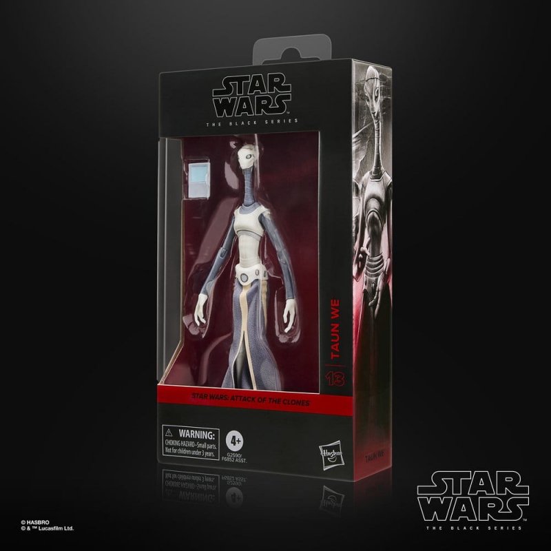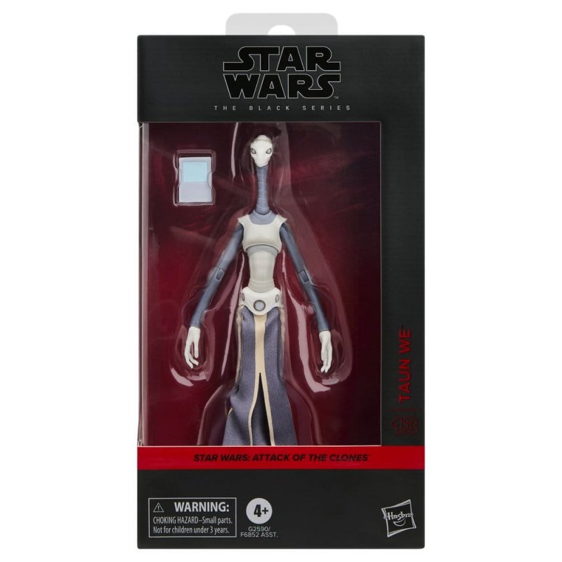 Star Wars The Black Series includes 6 inch action figures, vehicles, and roleplay items from the 40-plus-year legacy of the Star Wars galaxy, letting fans create galactic scenes with a faithfulness to Star Wars comic books, movies, series, and more. This Star Wars Hasbro action figure is detailed to look like Taun We from Star Wars: Attack of the Clones. With exquisite features and decoration, The Black Series embodies the quality and realism that Star Wars devotees love. May the Force be with you! (Additional products each sold separately. Subject to availability.)