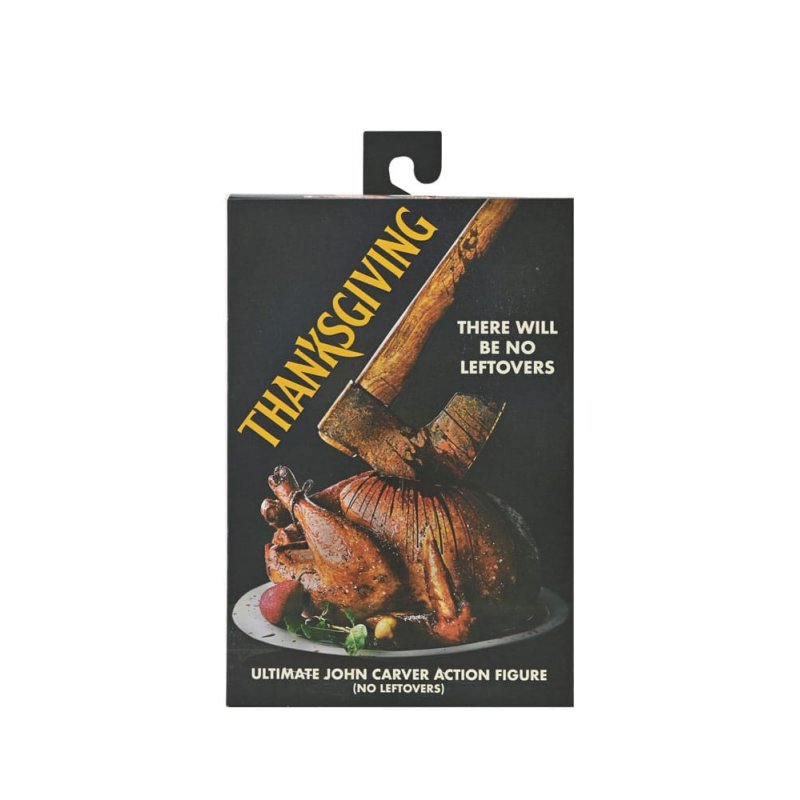From Eli Roth's 2023 slasher hit, Thanksgiving, comes a second Ultimate action figure of the holiday killer! Donning his turkey apron, John Carver is ready to cook up an unforgettable feast with a cornucopia of new accessories. This articulated, 7-inch scale figure includes a soft goods apron, interchangeable mask with microphone, bloody mask, melted mask, axe, electric cutter, cooking timer, cell phone on stand, pitchfork, kitchen knife, carving fork, and corkscrew. Plus, multiple interchangeable hands to hold his bounty of unconventional weapons! Comes in collector-friendly window box packaging with opening front flap, making it perfect for your NECA display. This figure is something to be thankful for!