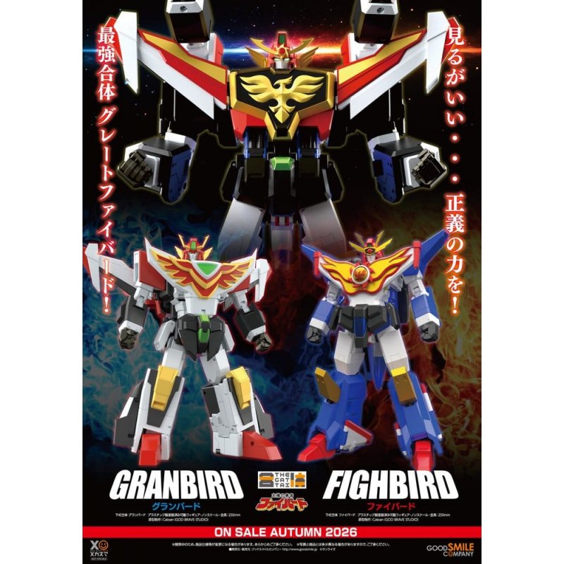 From the anime "The Brave Fighter of Sun Fighbird" comes THE GATTAI Fighbird, a complete transforming figure! - The figure stands at approximately 250mm tall in Armed Fighbird mode. - The action figure can be transformed from Fire Jet into Fighbird and be combined with Flame Breaster! - Translucent parts are used for the canopy of Fire Jet. The Landing Gear can be deployed without the use of interchangeable parts and can be rolled. - A 20mm tall figure of Yutaro Katori in android form is included and can be transformed into Fighbird's core to combine with the mecha. - The figure is fully articulated, allowing for the recreation of various dynamic poses featured in the anime. - Flame Breaster's dual cannons are articulate and retractable. In addition to the Armament Combination mode, Flame Breaster can be combined with Fire Jet for a figure-exclusive combination. - When in humanoid form, the Dyna Busters and Flare Missiles mounted on Fighbird's arms and legs respectively can be deployed. When in combined form, the Flame Cannons can be deployed as well to recreate the Full Blast move. - The Flame Sword can be stored in the nose cone section of Fire Jet, just like in the anime (*the sword must first be detached before being stored). The Flame Sword's cross-guard gimmick can also be recreated. Set includes: - Fighbird - Flame Breaster - Flame Sword - Yutaro Katori android form figure - Interchangeable hand parts set