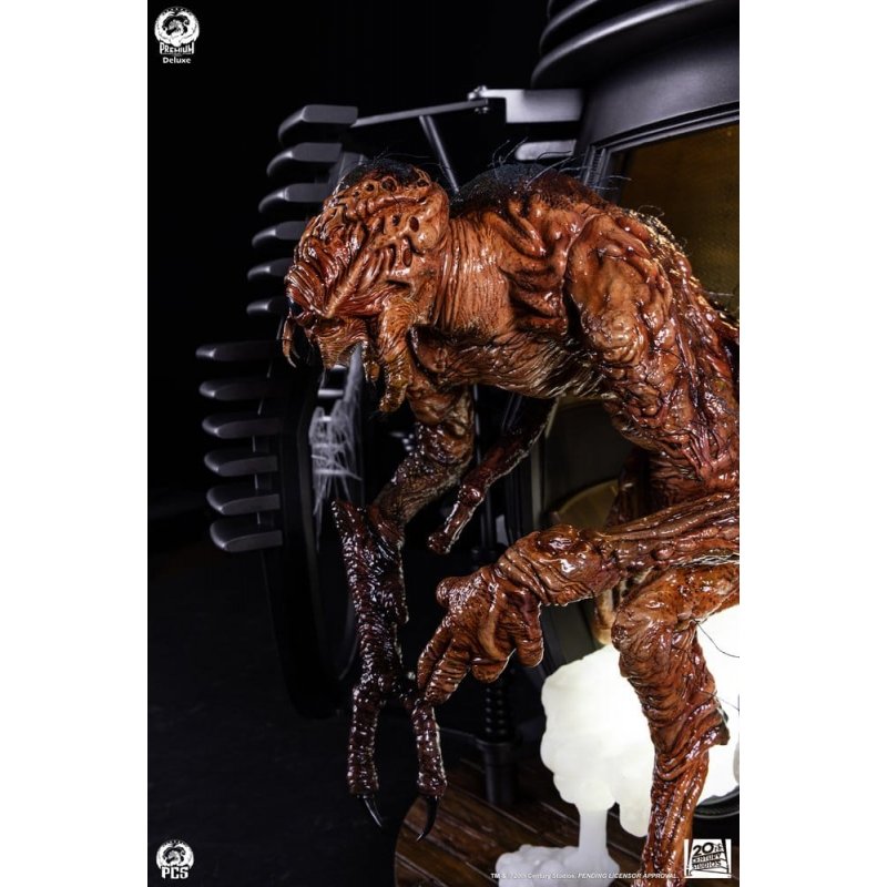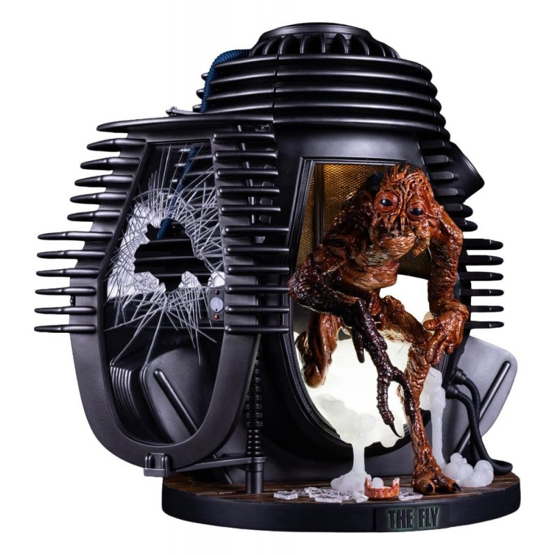 Premium Collectibles Studio is proud to present The Fly 1:4 Scale Statue Deluxe Edition, an exciting new collectible paying tribute to the titular creature from the hit 1986 sci-fi/horror film.Standing nearly 24” tall, this highly detailed collectible depicts the hideously transformed human/fly hybrid stepping out from the teleportation chamber that acted as the catalyst for this macabre metamorphosis.The Fly is presented here as a fully sculpted, hand painted statue featuring an incredibly detailed sculpt of the misshapen organic forms that make up the creature.The Deluxe Edition includes the pod itself, complete with light up smoke pouring forth from the chamber, broken glass and the remains of Seth Brundle's lower jaw littering the floor around his foot.This Deluxe base also includes a removable "THE FLY" logo for additional display options.The inhuman appearance and asymmetrical anatomy of are accentuated by excellent paint work throughout, bringing to vivid life his half-formed insect appendages and carapace.Additionally, the statue is outfitted with wiry synthetic hairs adding additional depth and realism to this creature collectible.Transform your horror collection and pick up The Fly 1:4 Scale Statue Deluxe Edition by PCS today!Size: 60 x 58 x 38 cm (23.62" x 22.83" x 14.96")
