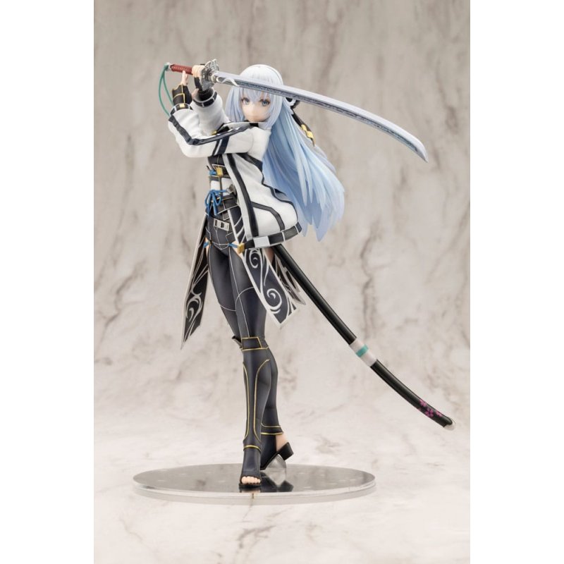 "From the popular game series The Legend of Heroes by Nihon Falcom, Shizuna Rem Misurugi, Ikaruga's vice-commander, practitioner of the Black God One Blade School, also known as the Divine Blade of Silver, will finally be released as a scale figure!Sculpted in her signature pose from the game, she comes to life in the combat suit she wears in The Legend of Heroes: Trails through Daybreak and other games. Her innocent features together with her Onyx Odachi, Akegarasu, which is almost as tall as she is, have been faithfully recreated down to the finest details.The base is decorated with dancing pink petals styled after her S-Craft Zeroth Gleam.Line her up alongside other figures from the same series, including those from the Calvard Arc, to recreate your own scenes from the Trails world. Perfect for any fan of the series, add this masterpiece to your collection today. "
